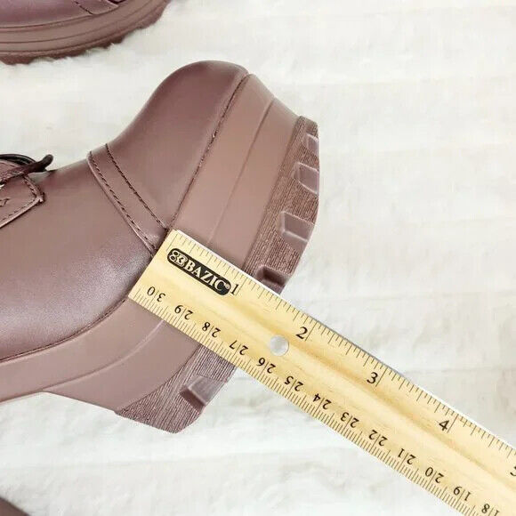 Flex Chunky Block Heel Light Weight Ankle Boots Square Chain Link Mocha Brown