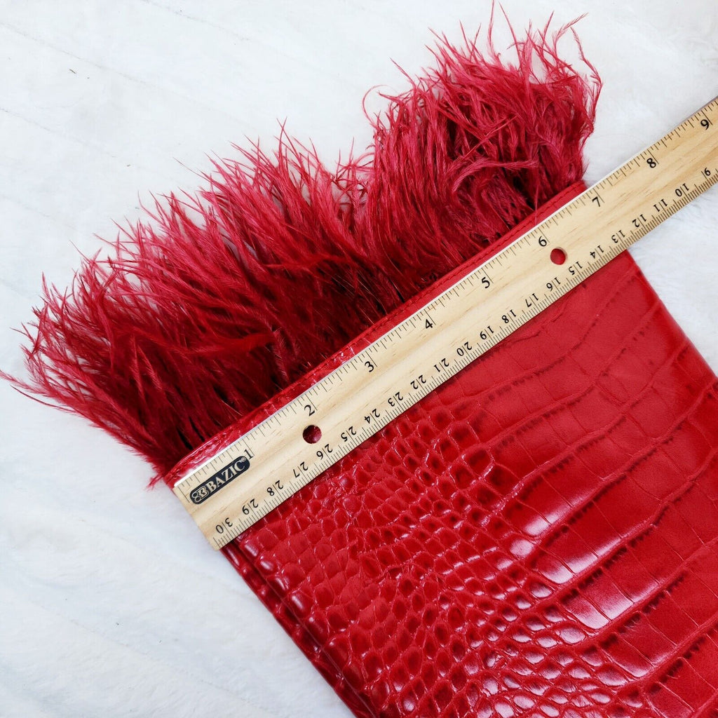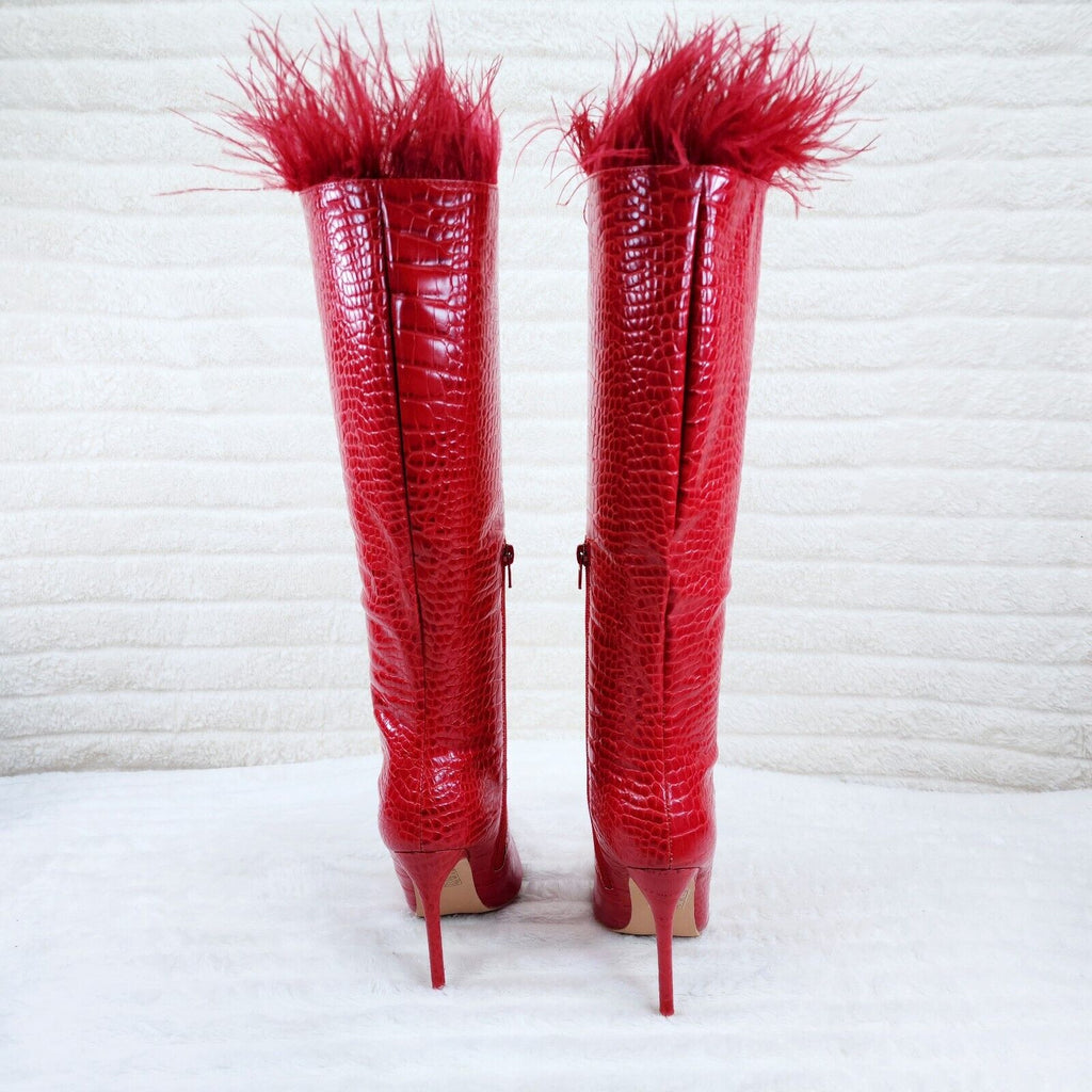 Flirty Red Snake Texture Knee High Heel Stiletto Boots Sexy Feather Top