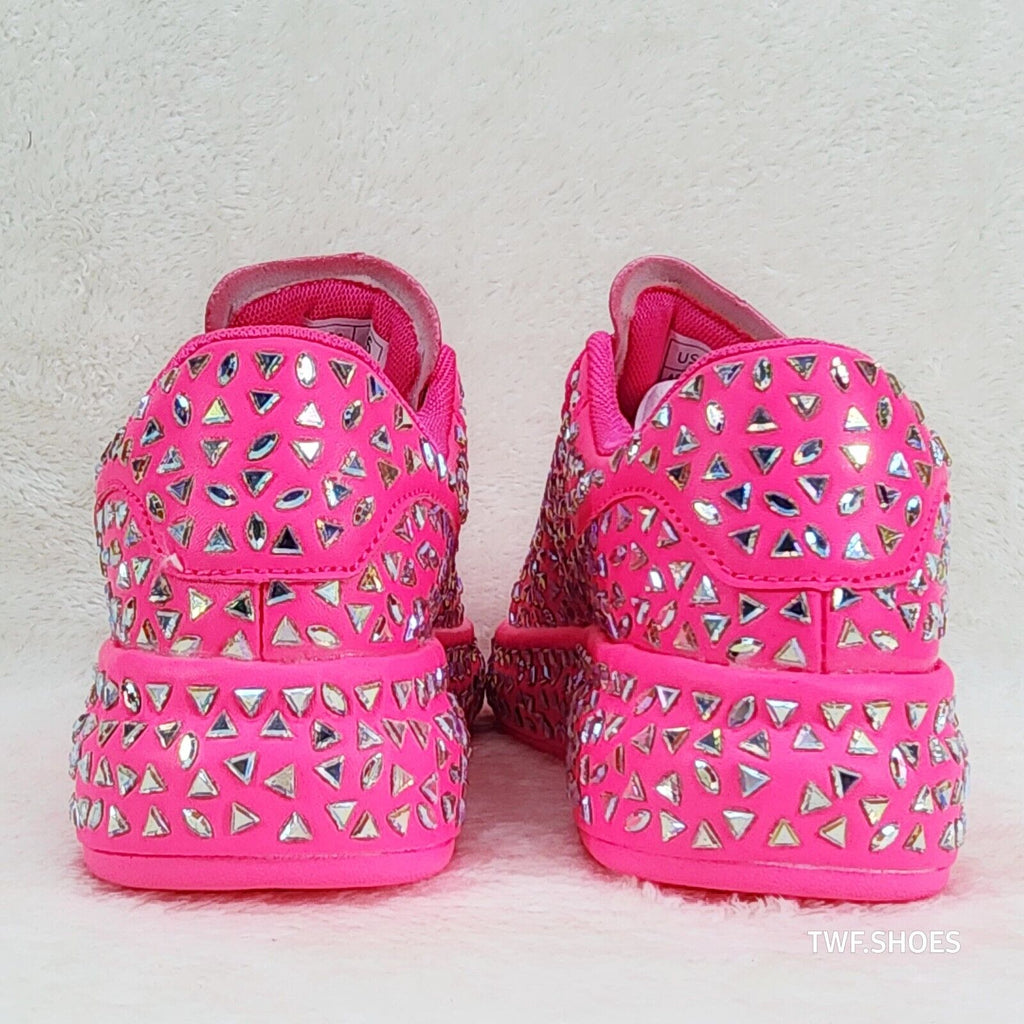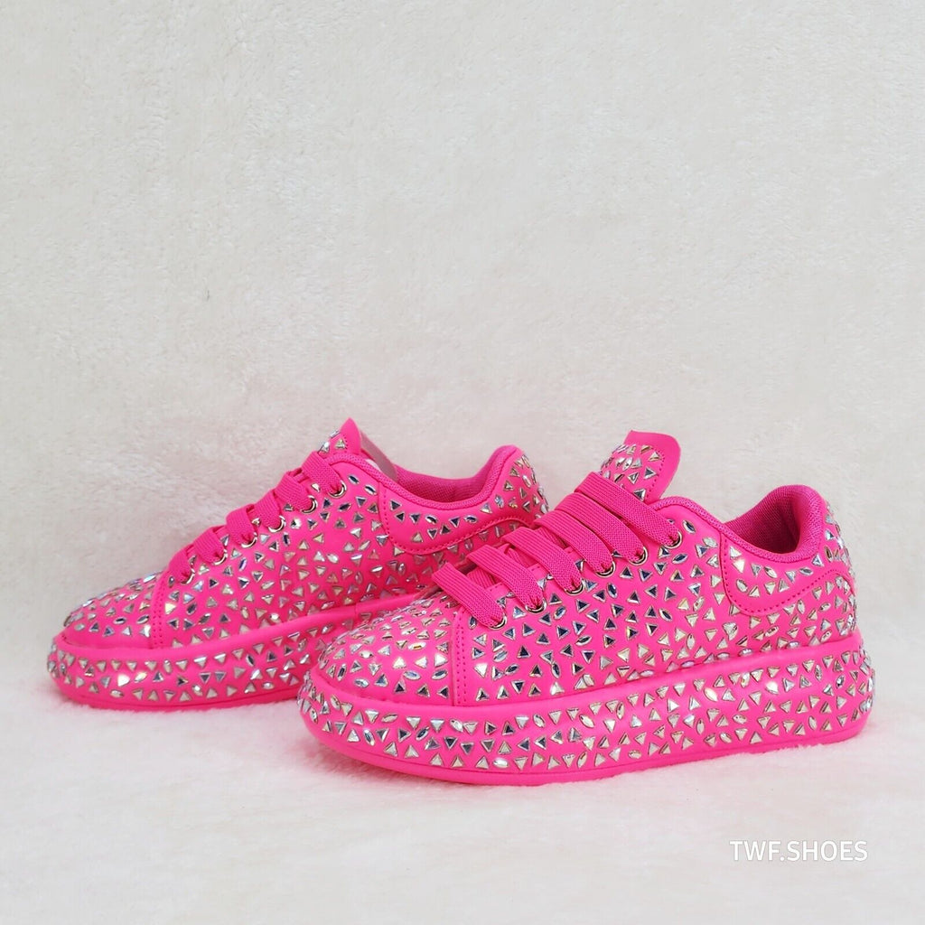 Geo Dazzle Cush Iridescent Stone Hot Pink Platform Sneakers Tennis Shoes