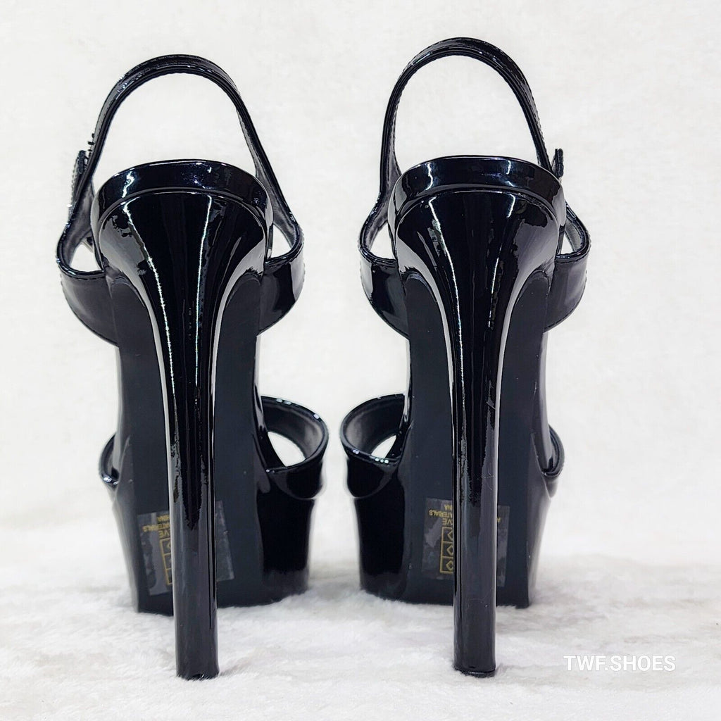 Gwen Black Patent Platform Open Toe Ankle Strap Stiletto High Heel Shoes