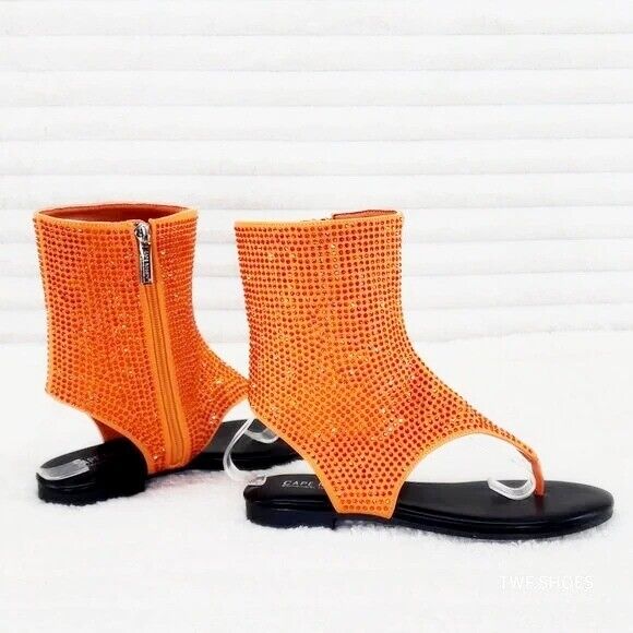 Just Doit Rhinestones Flat Bootie Thong Sandals Orange