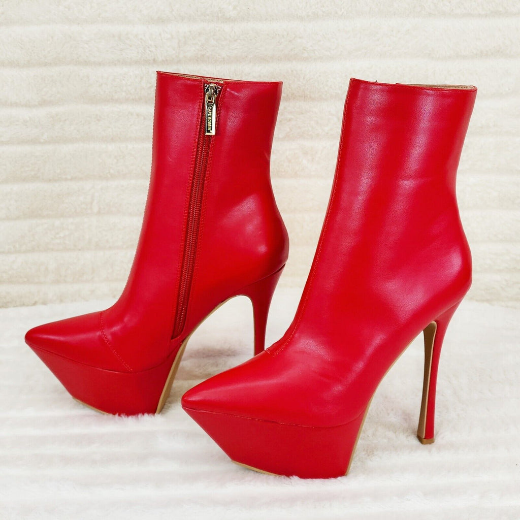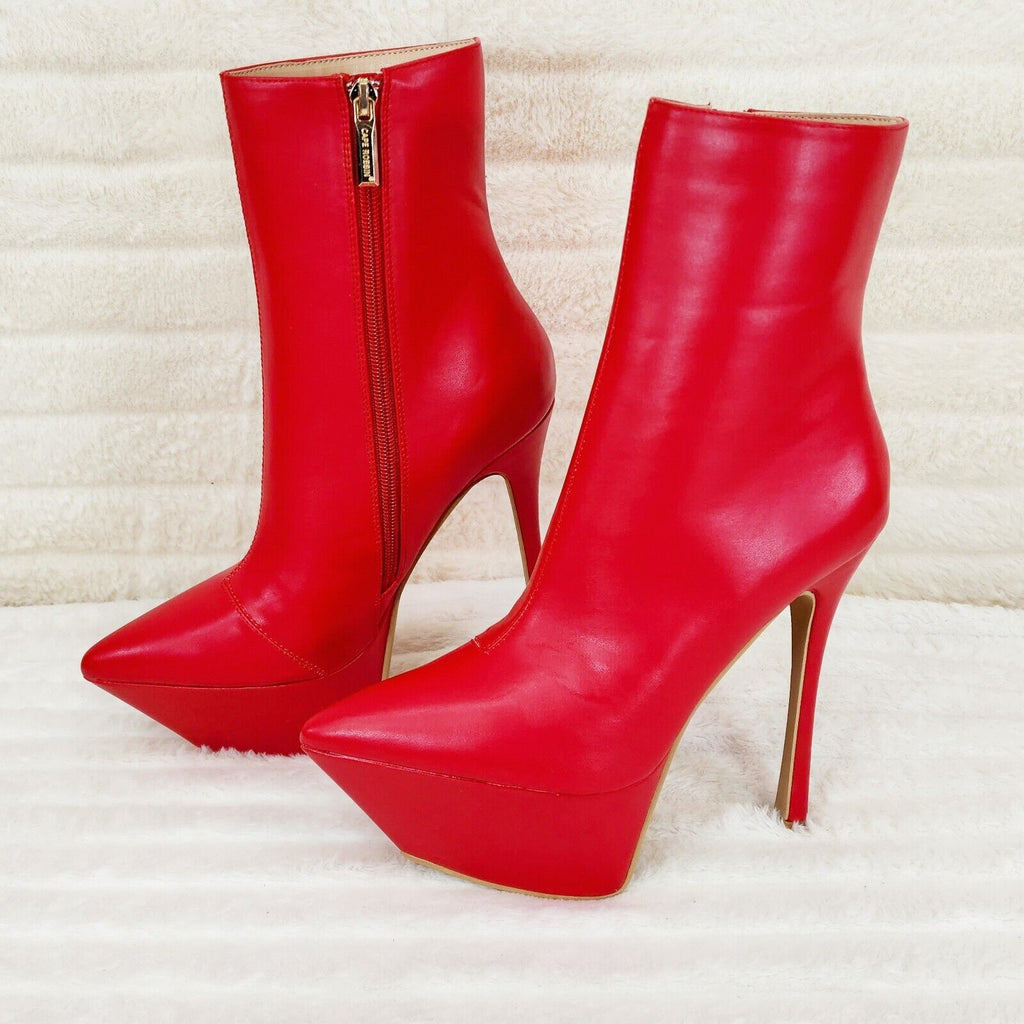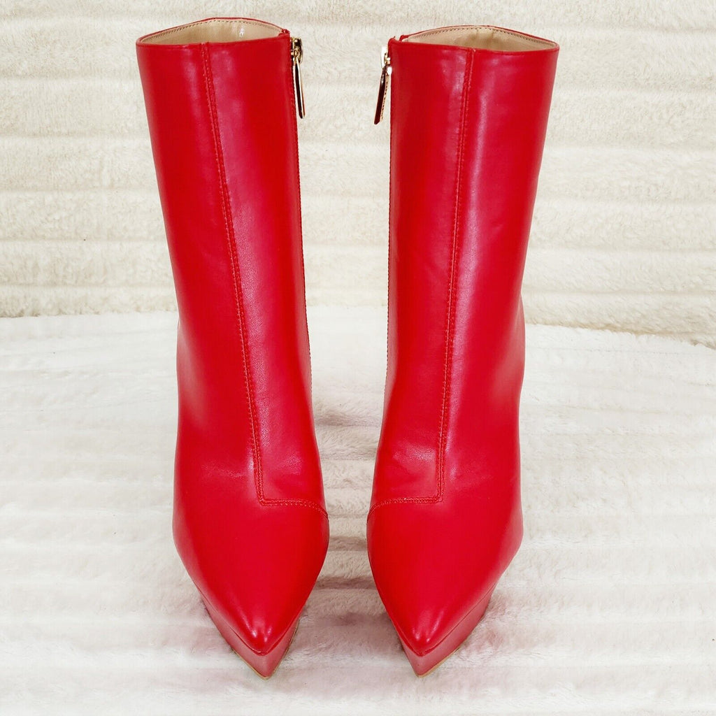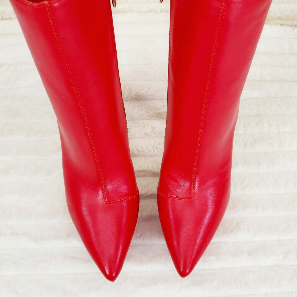Kinder Pointy Toe Platform Stiletto Heel Ankle Boots Bright Red Stretch