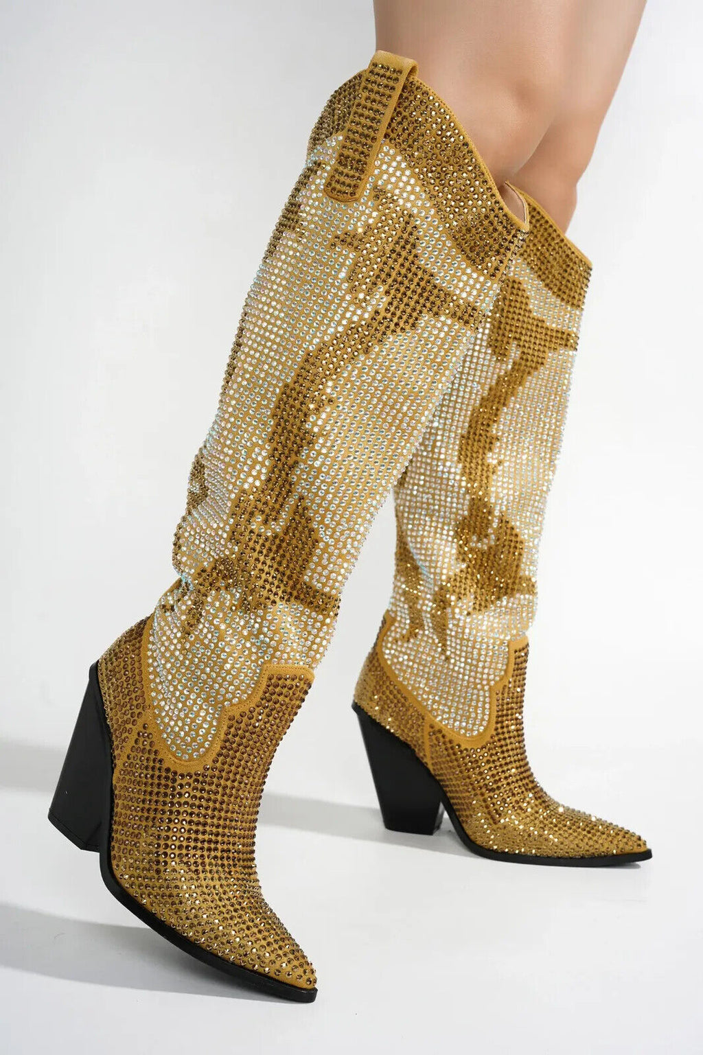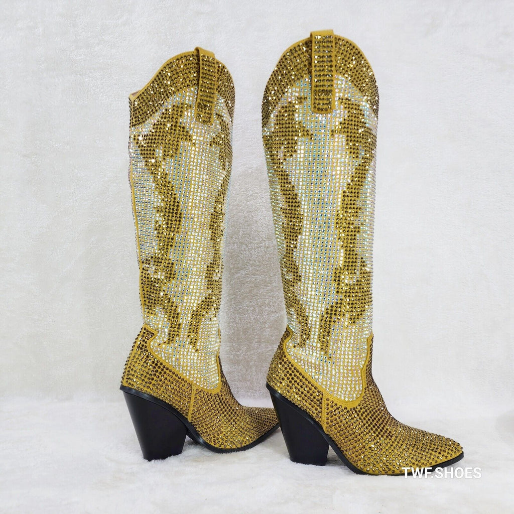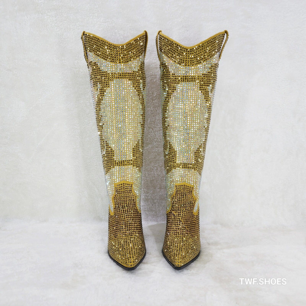 Martina Gold Rhinestones Country Western Glamour Cowgirl Boots