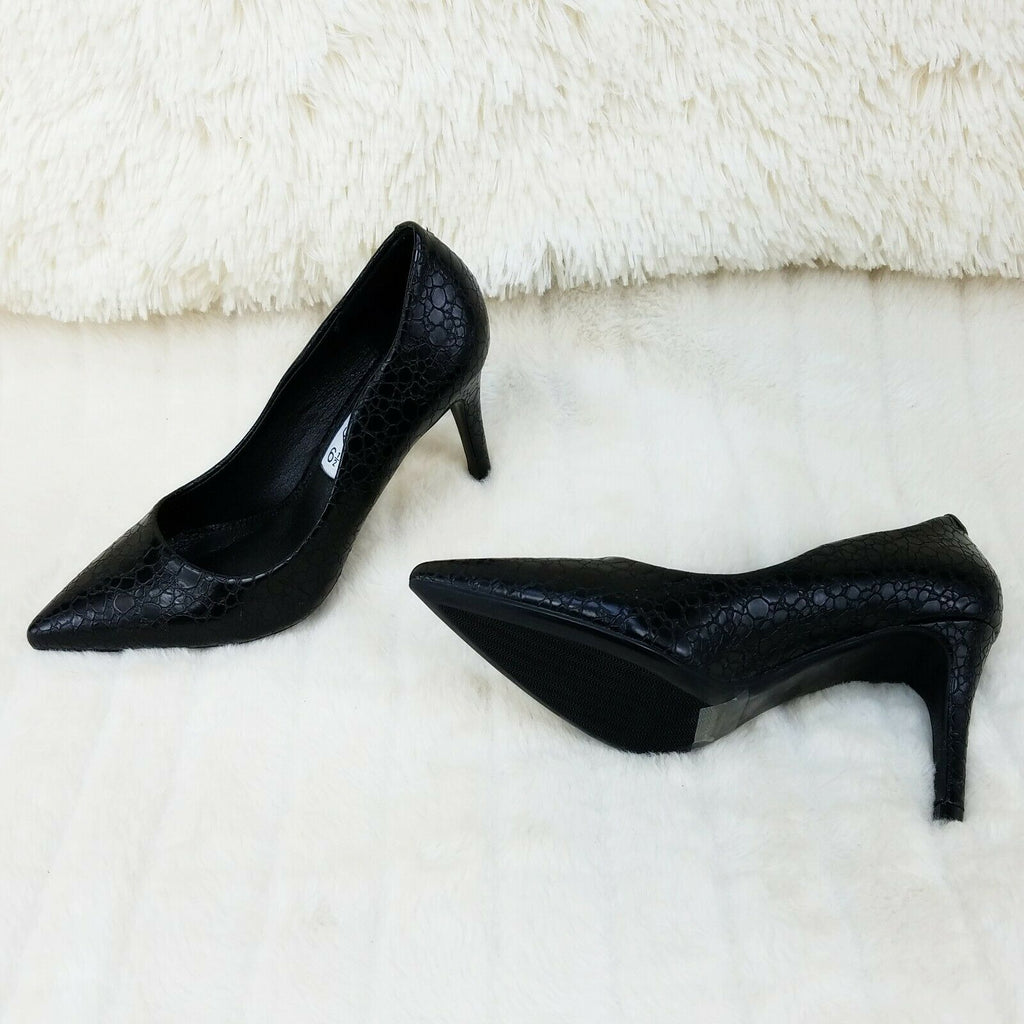 Monica Textured 3.5" Heel Pointy Toe Pump Shoes Black