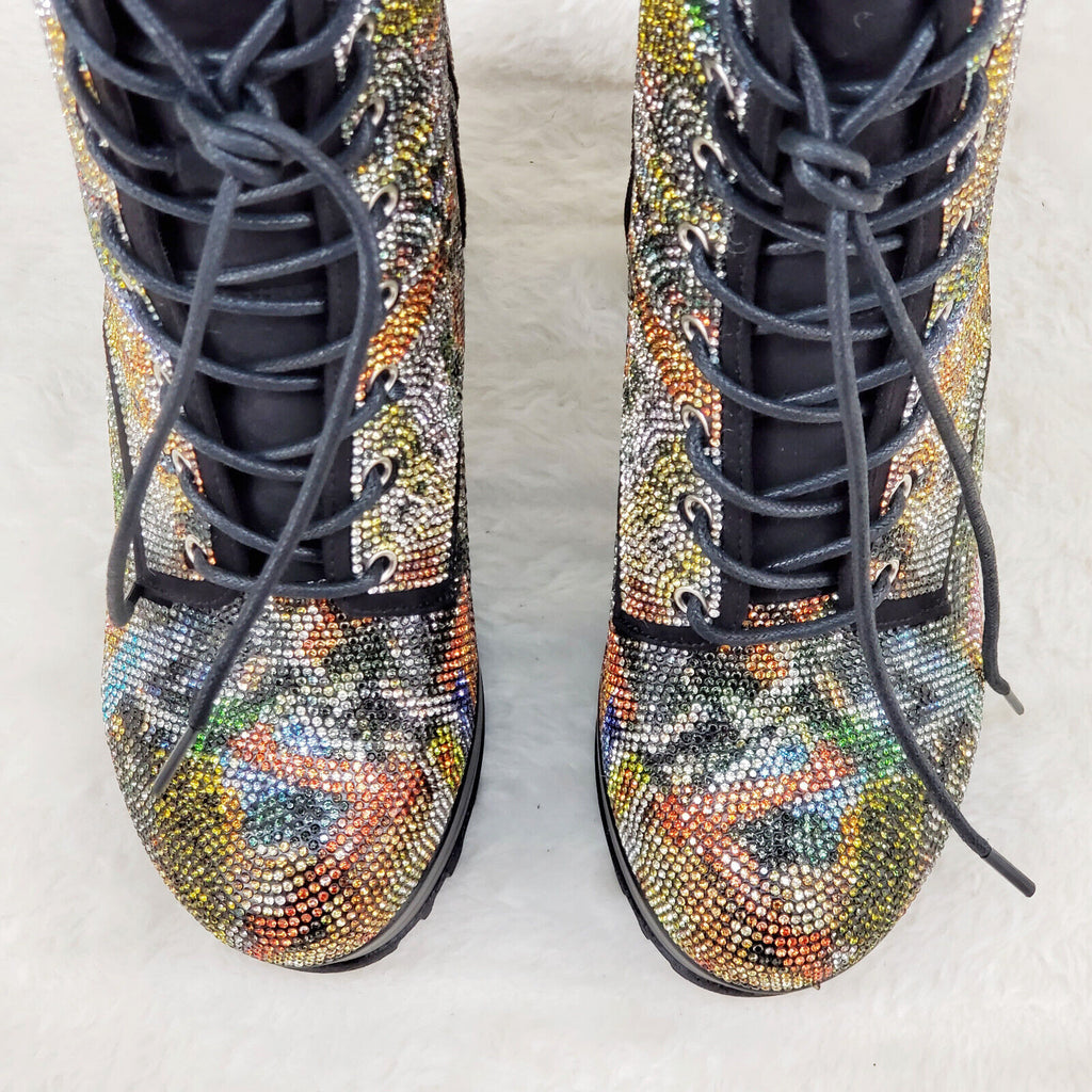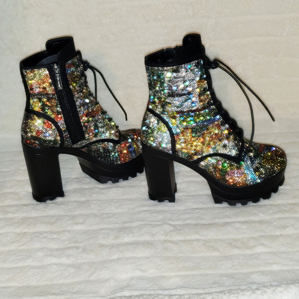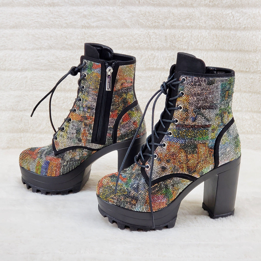 News Story Multi Sparkle Rhinestone Lug Sole Chunky High Heel Ankle Boots