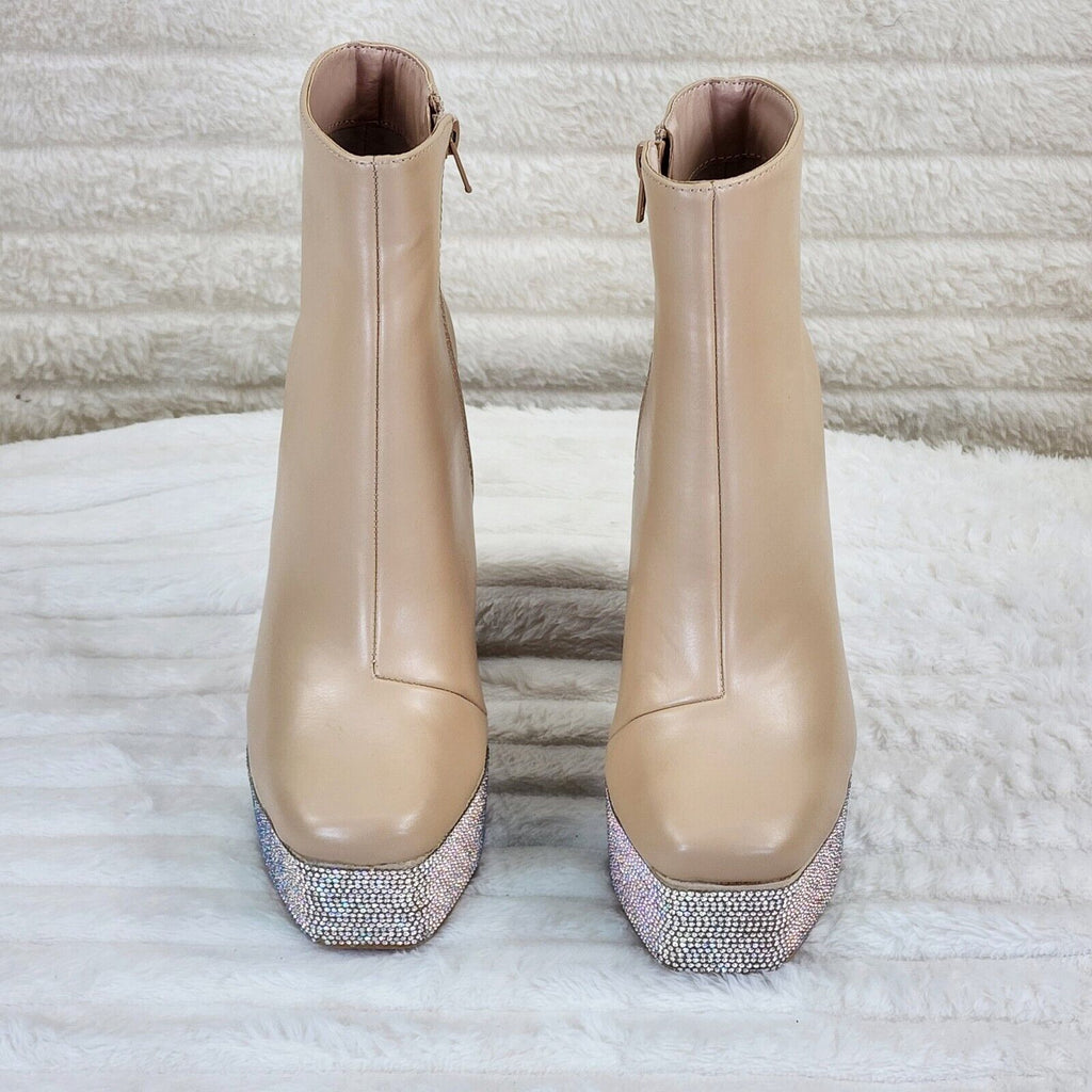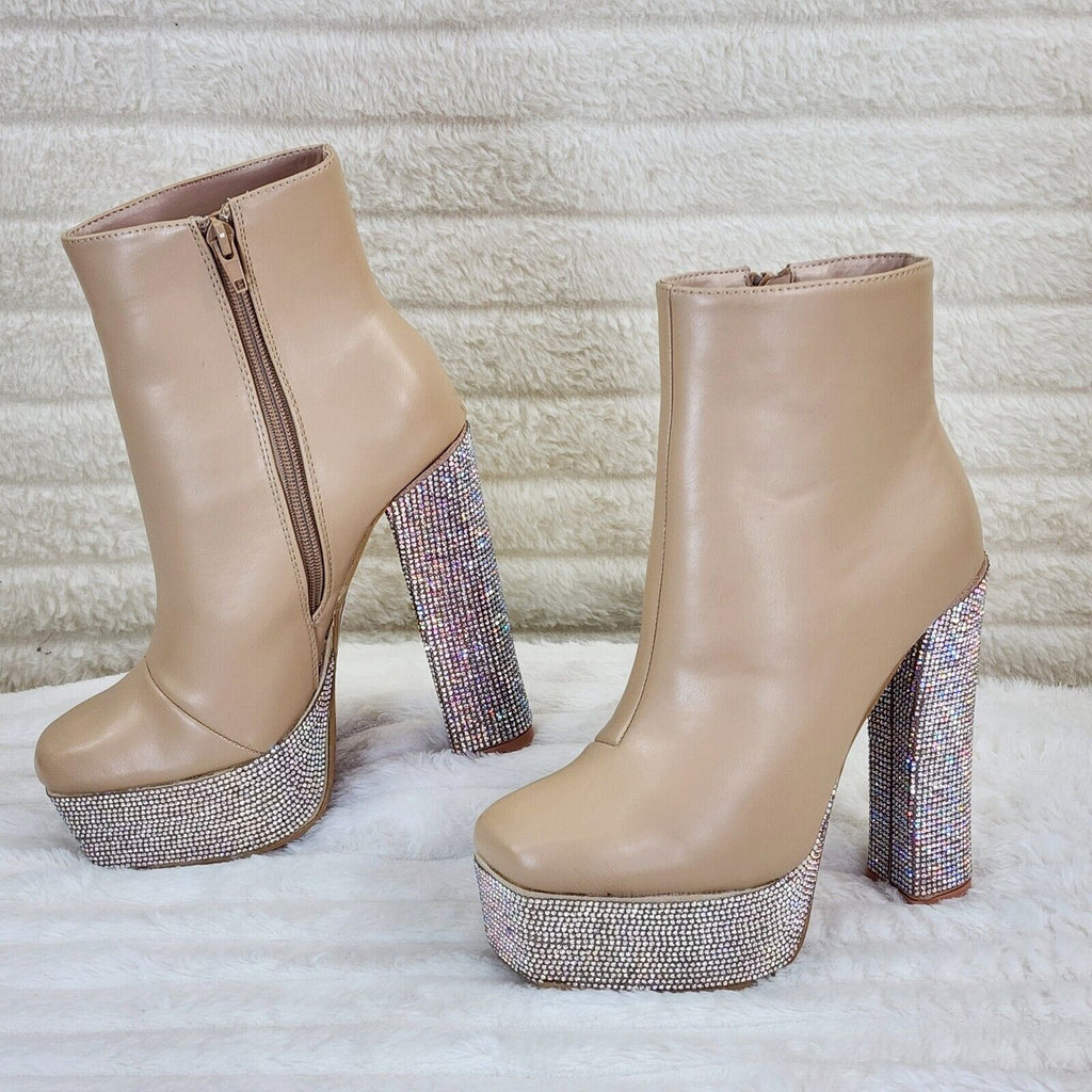 Nikki Cream Leatherette Rhinestone Platform Chunky Heel Ankle Boots