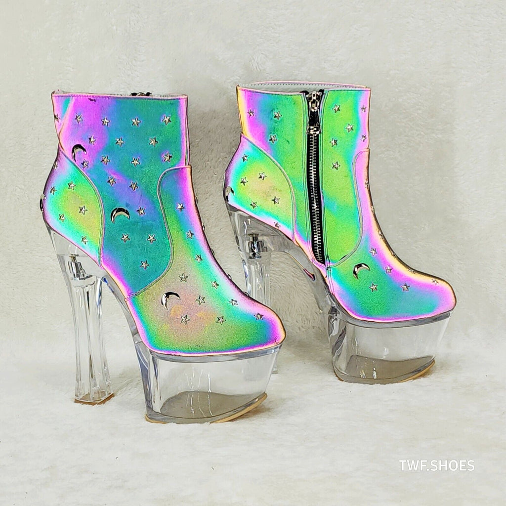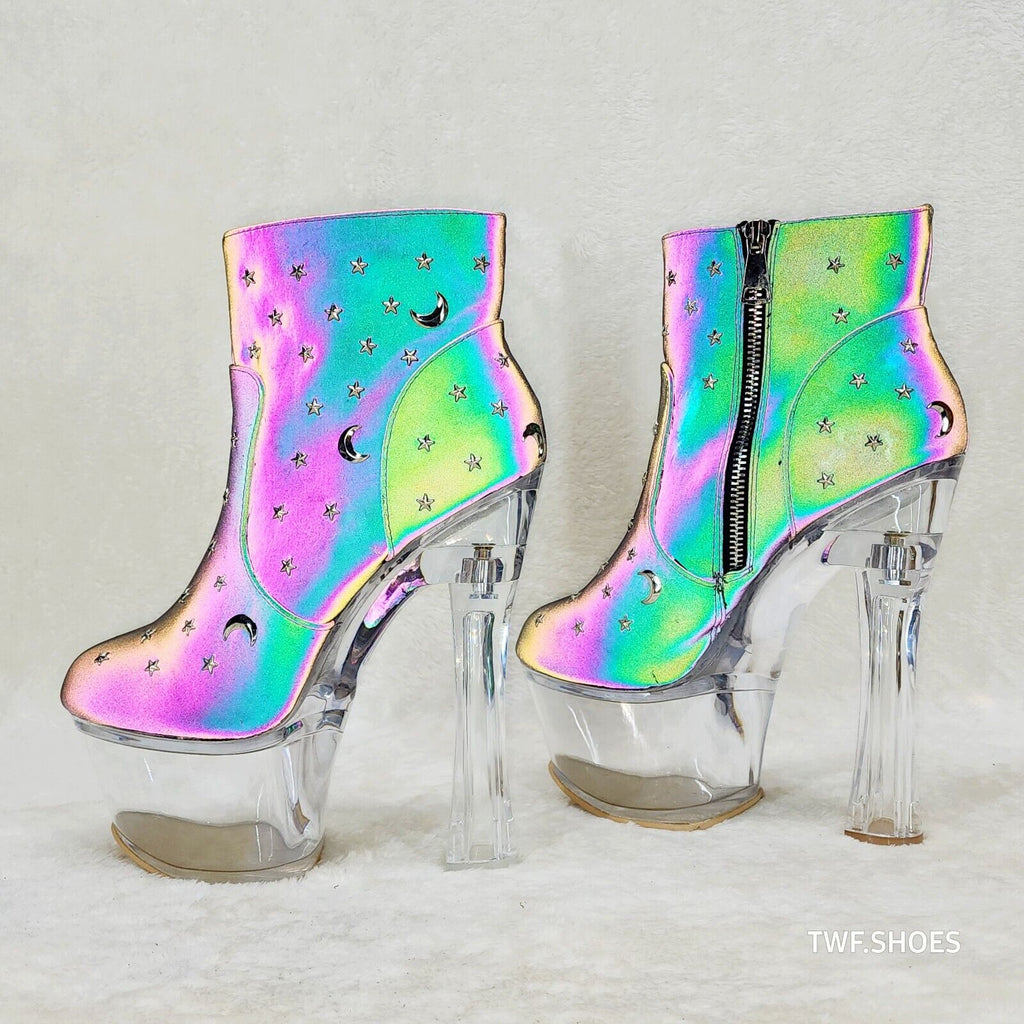 Ocho Purple Multi Reflective Ankle Boots Clear Platform & Chunky Heels Moon Star
