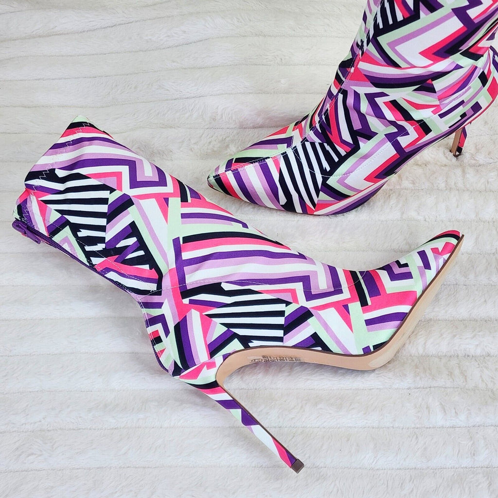 Odin Crazy Wild Color Pattern High Heel Stretch Fabric Ankle Boots - Purple Pink