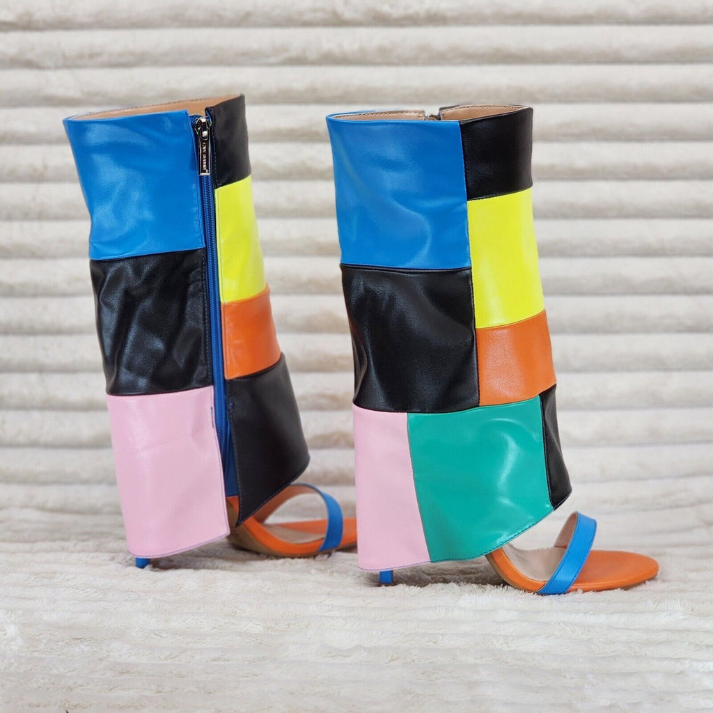 Paris Color Block Stiletto Fold Over Skirted Shootie Boot Sandals