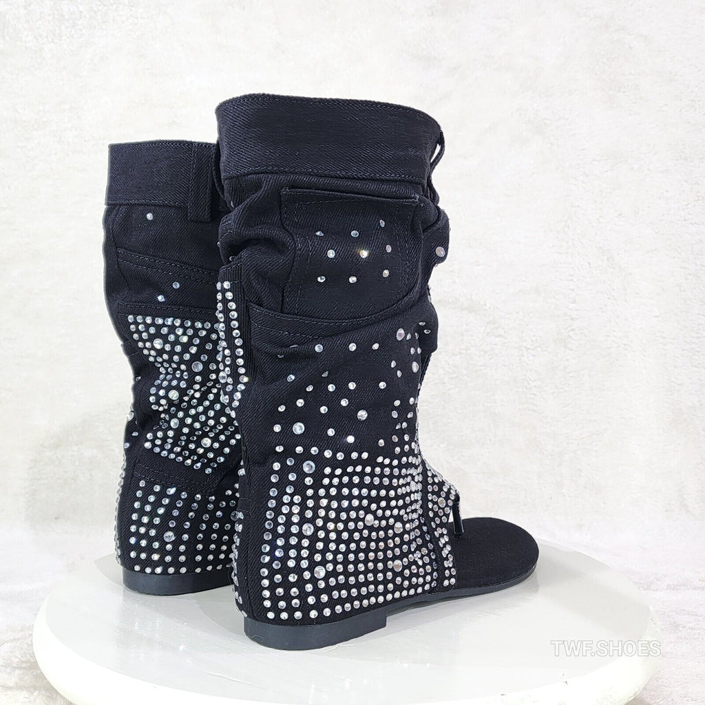 Perplex Black Denim & Rhinestones Sandal Slouch Boots Shooties