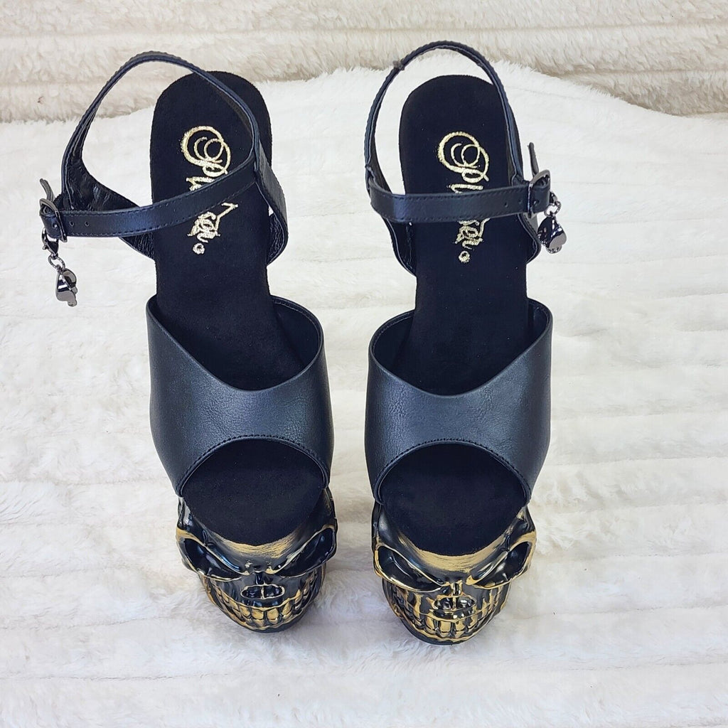 Rapture Black Matte Brass Skull & Bones LED 8" High Heel Platform Shoes 5-10 NY