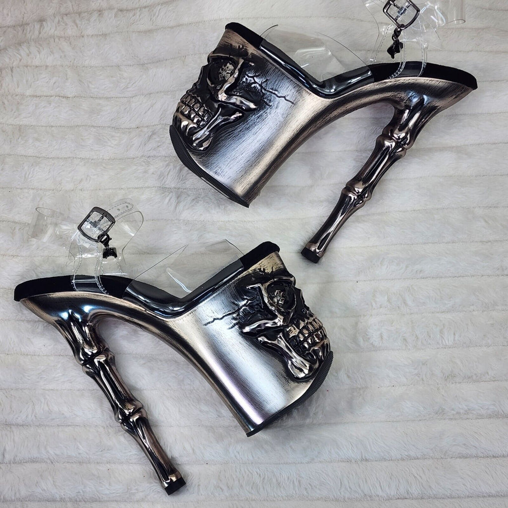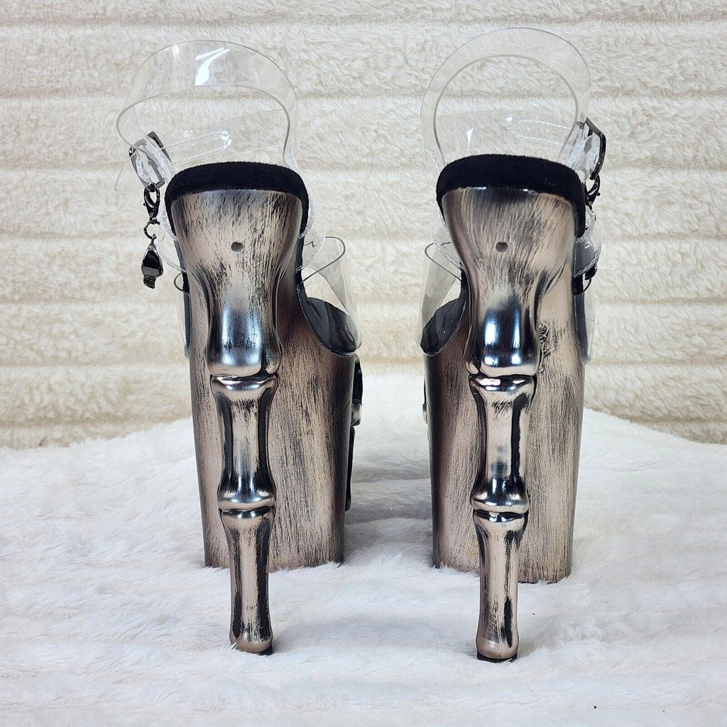 Rapture Clear Pewter Skull & Bones LED 8" High Heel Platform Shoes 5-10 NY