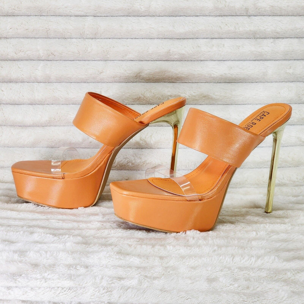 Razz Slip On High Heel Clogs Mules Slides Orange Gold Tone Stiletto