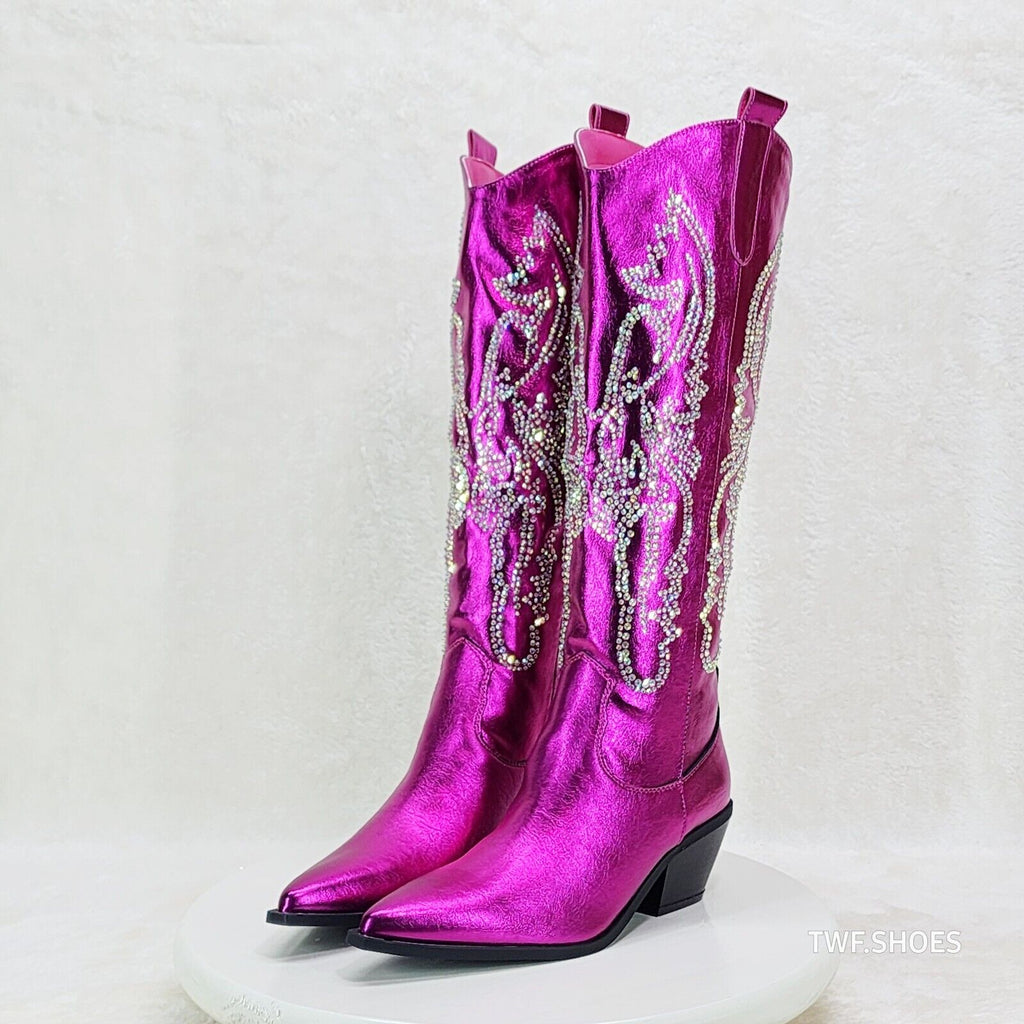 Razzle Metallic Pink Fuchsia Country Western Cowgirl Knee Boot Rhinestone Dazzle