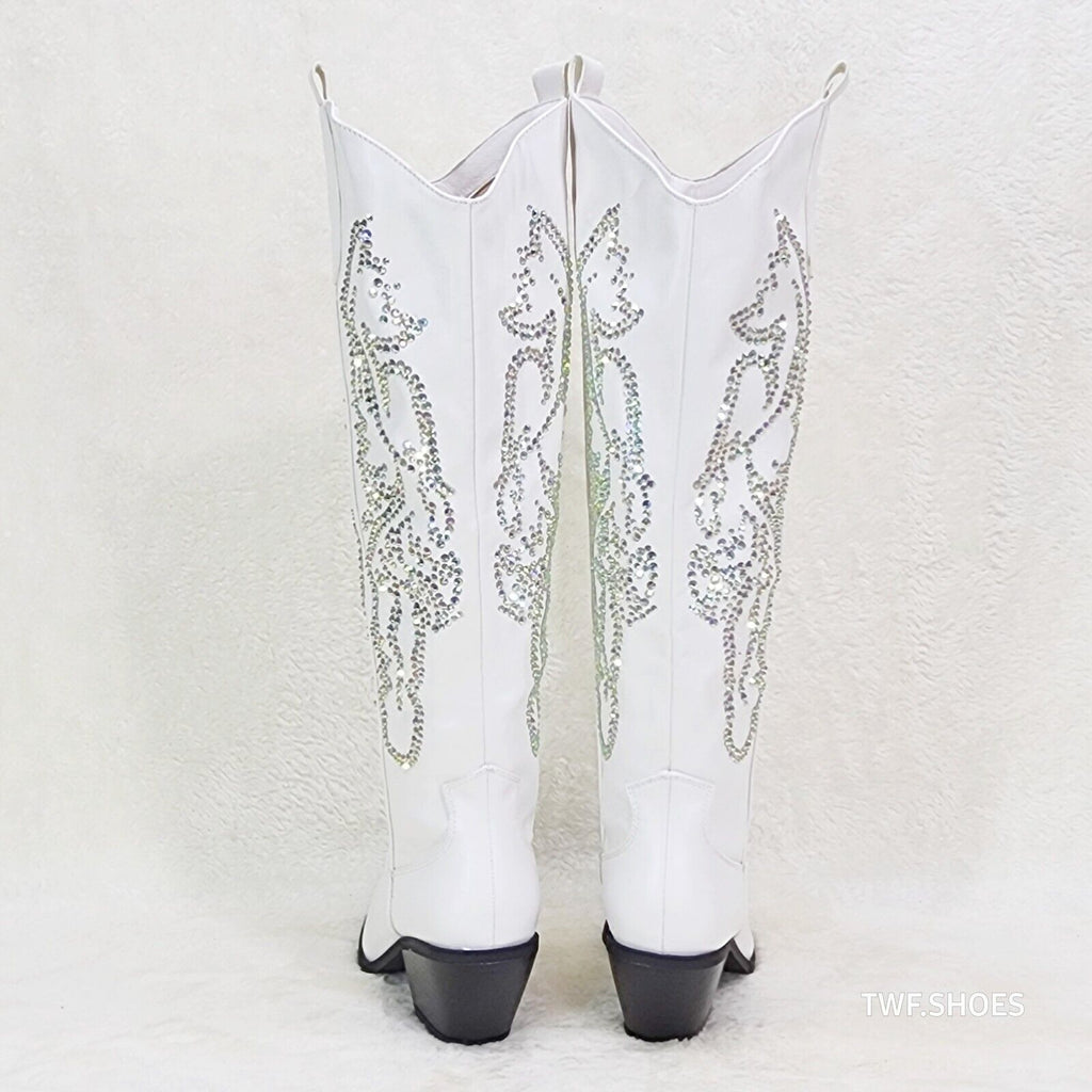 Razzle White Country Western Cowgirl Knee Boots Rhinestone Dazzle