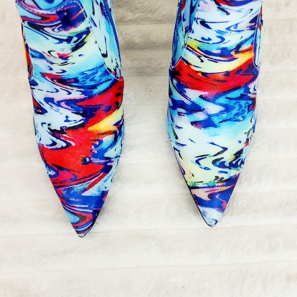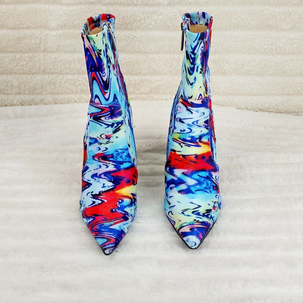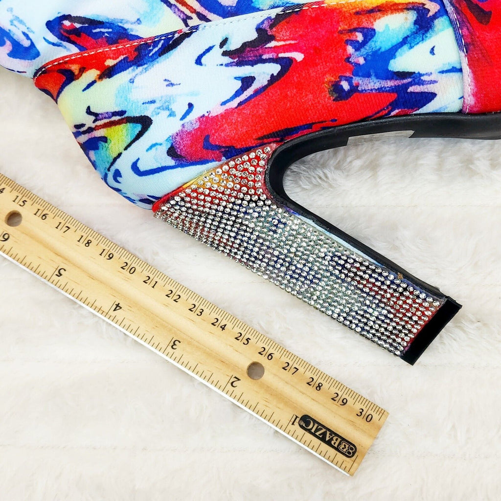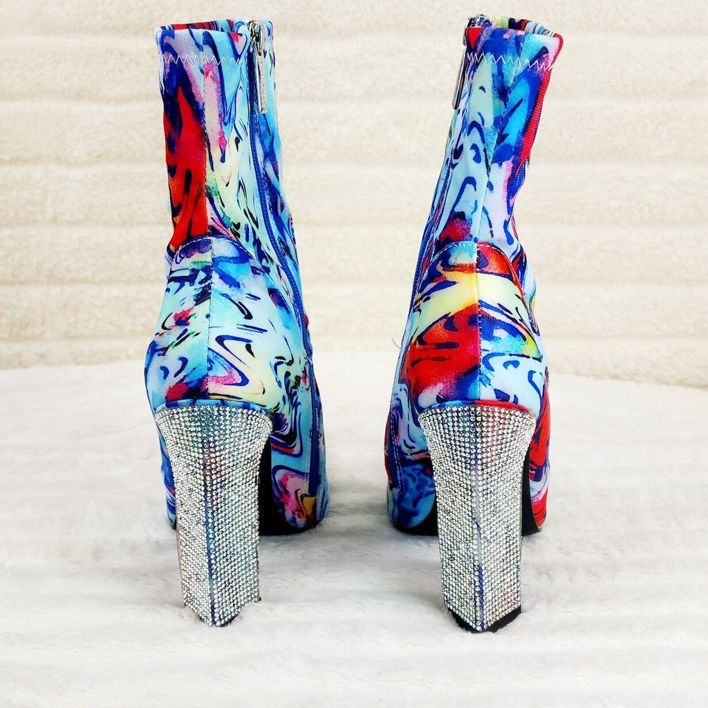 Regal Multi Color Print Stretch Upper Rhinestone Heel Ankle Boots