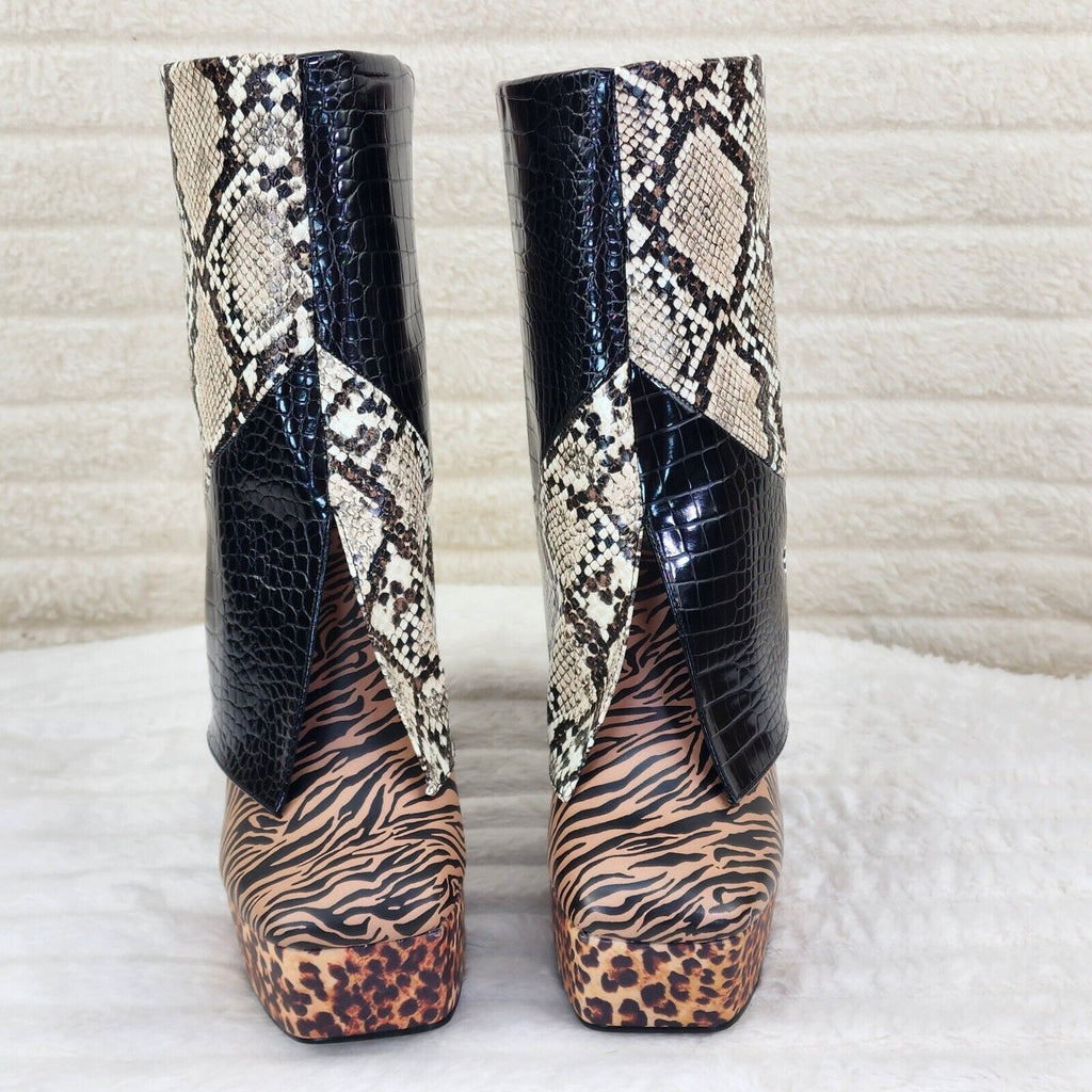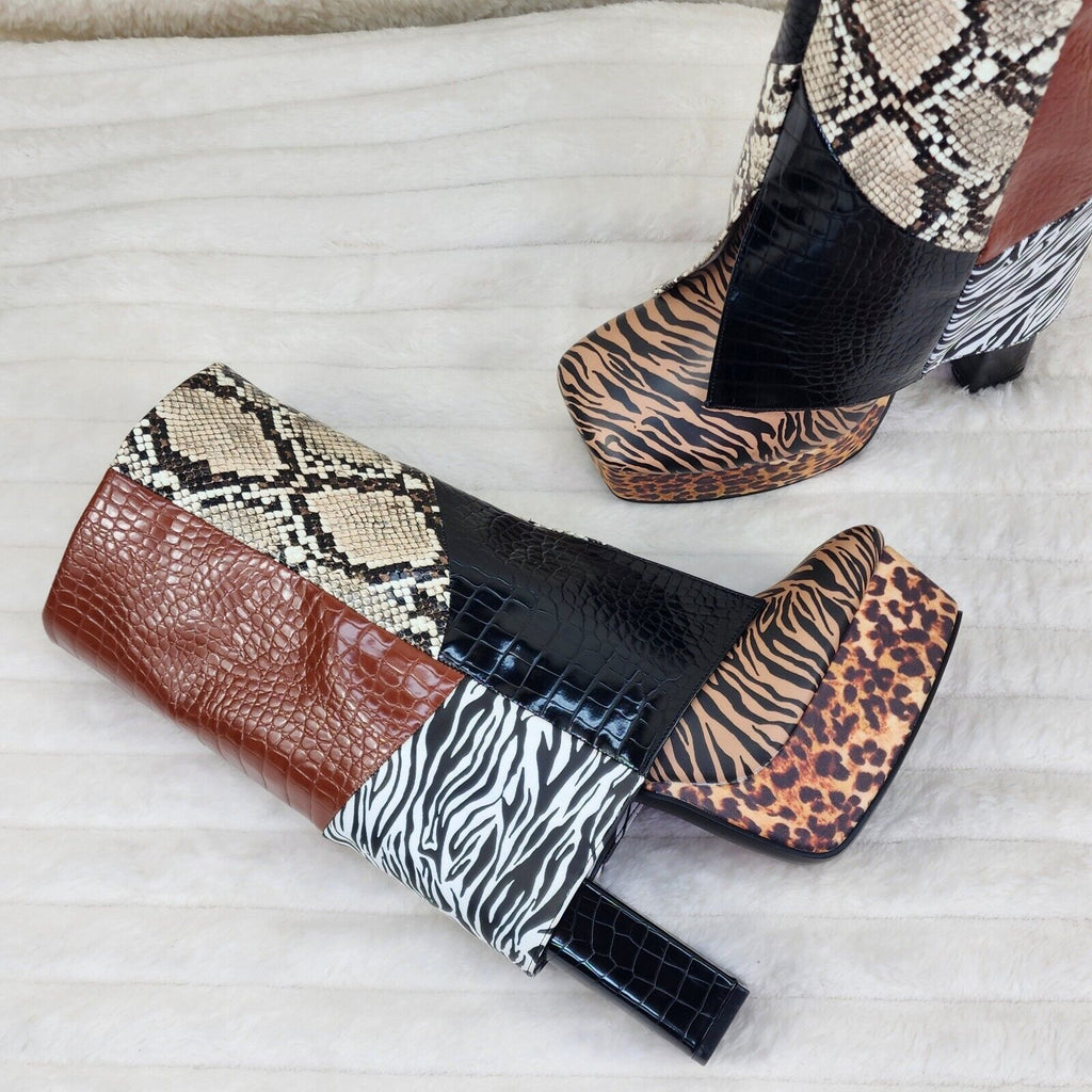 Riches Animal Print Block Skirted Chunky Heel Pull On Platform Boots