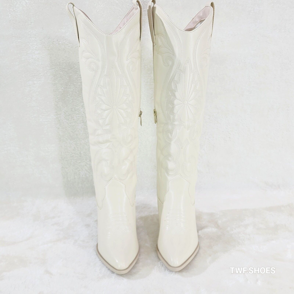 Ride On Bone Cream Country Western Cowgirl Knee Boots