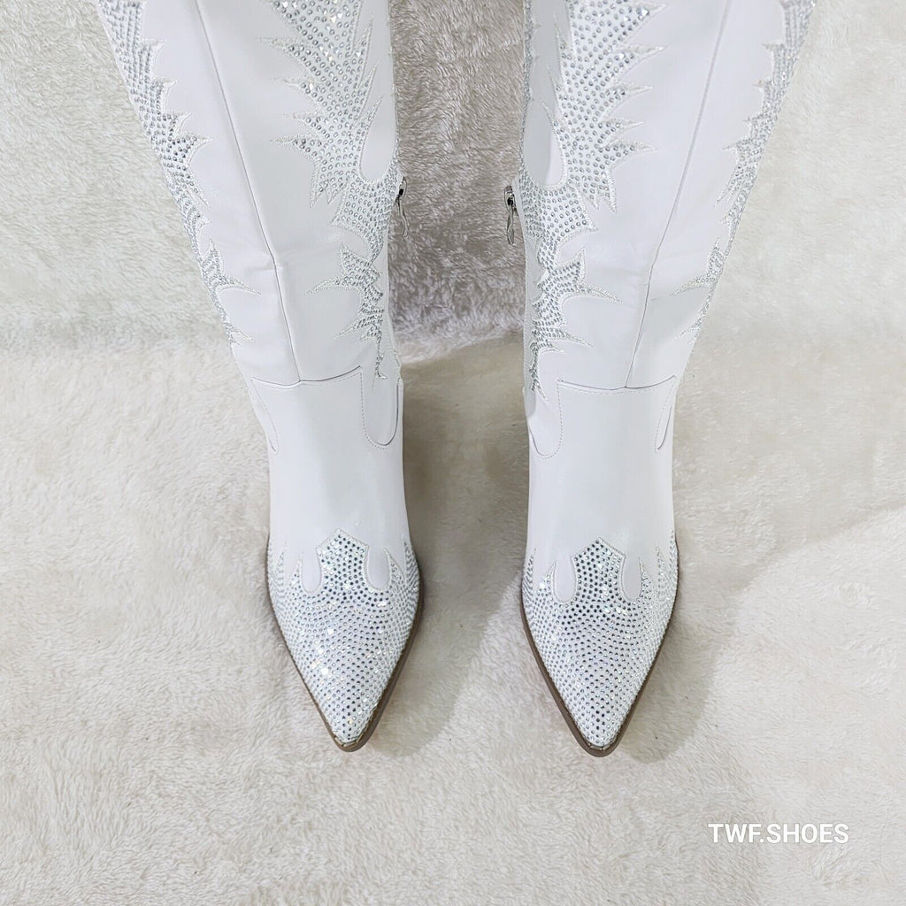 Rodeo Flash White Matte Rhinestone Western Knee High Cowgirl Boots