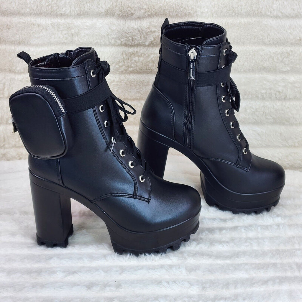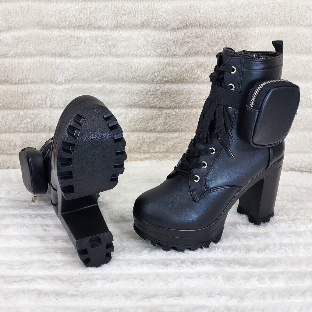 Secrets Black Chunky Block Heel Side Purse/Pouch Ankle Boots Brand New