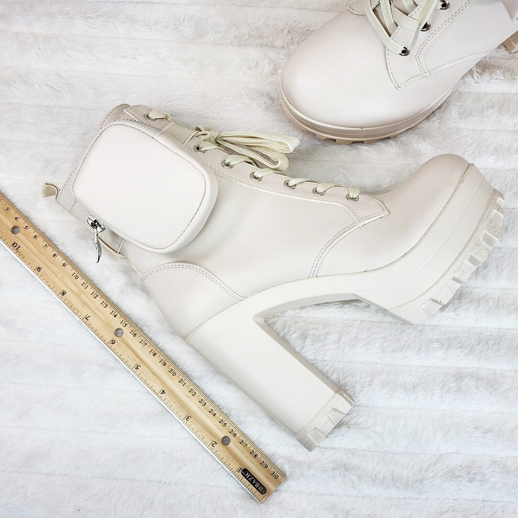 Secrets Nude Chunky Block Heel Side Purse/Pouch Ankle Boots Brand New