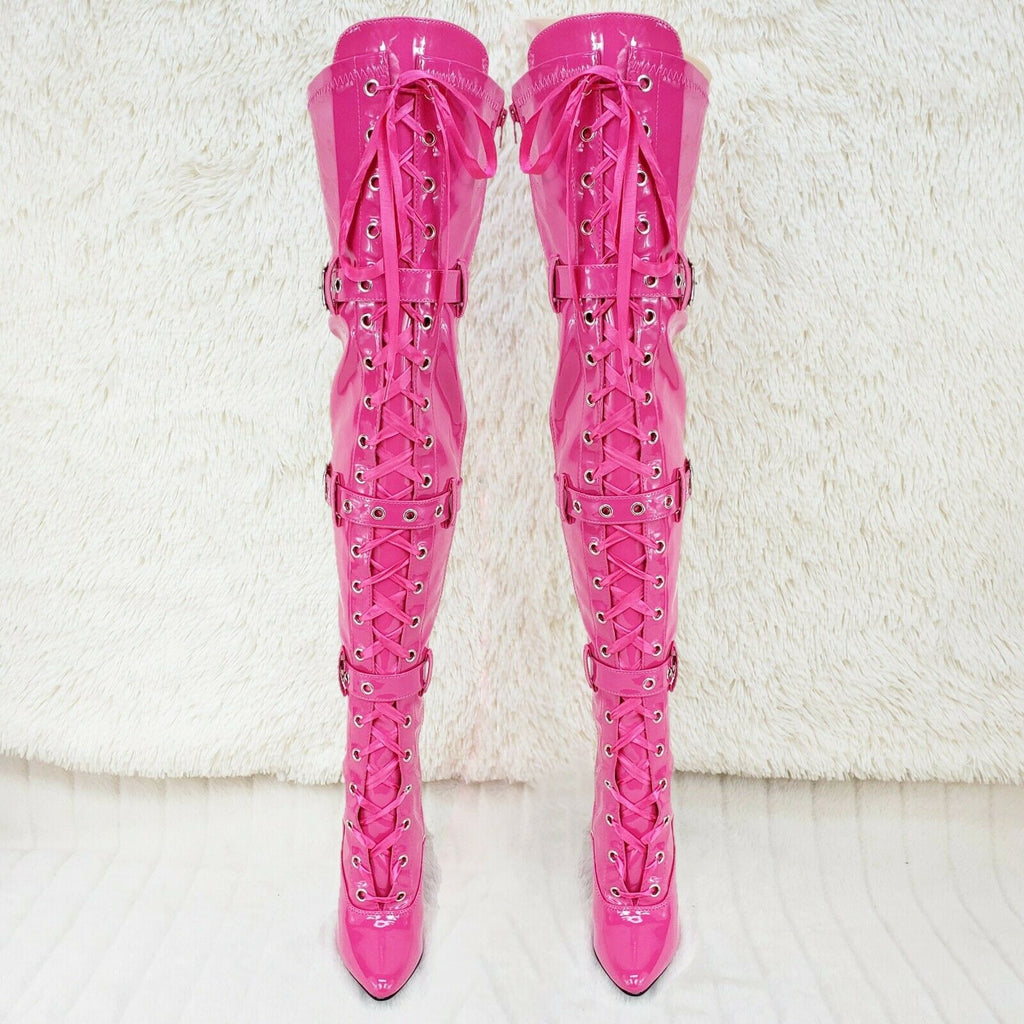 Seduce 3028 Hot Pink Lace Up Thigh High Boots 5" Stiletto Heel US Sizes NY