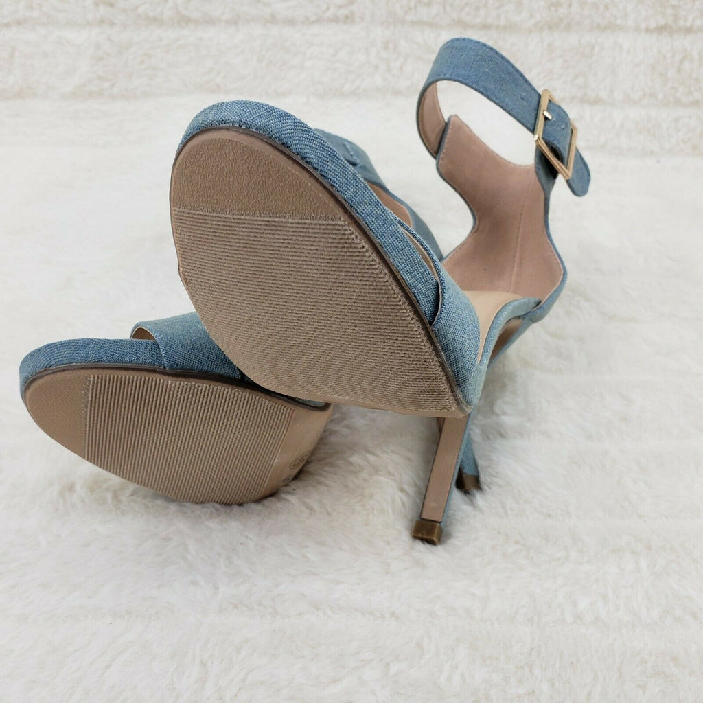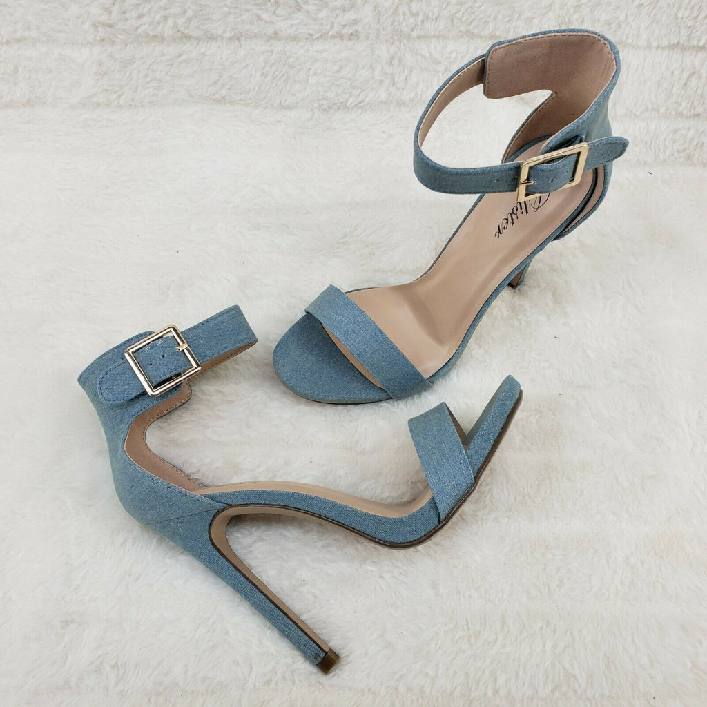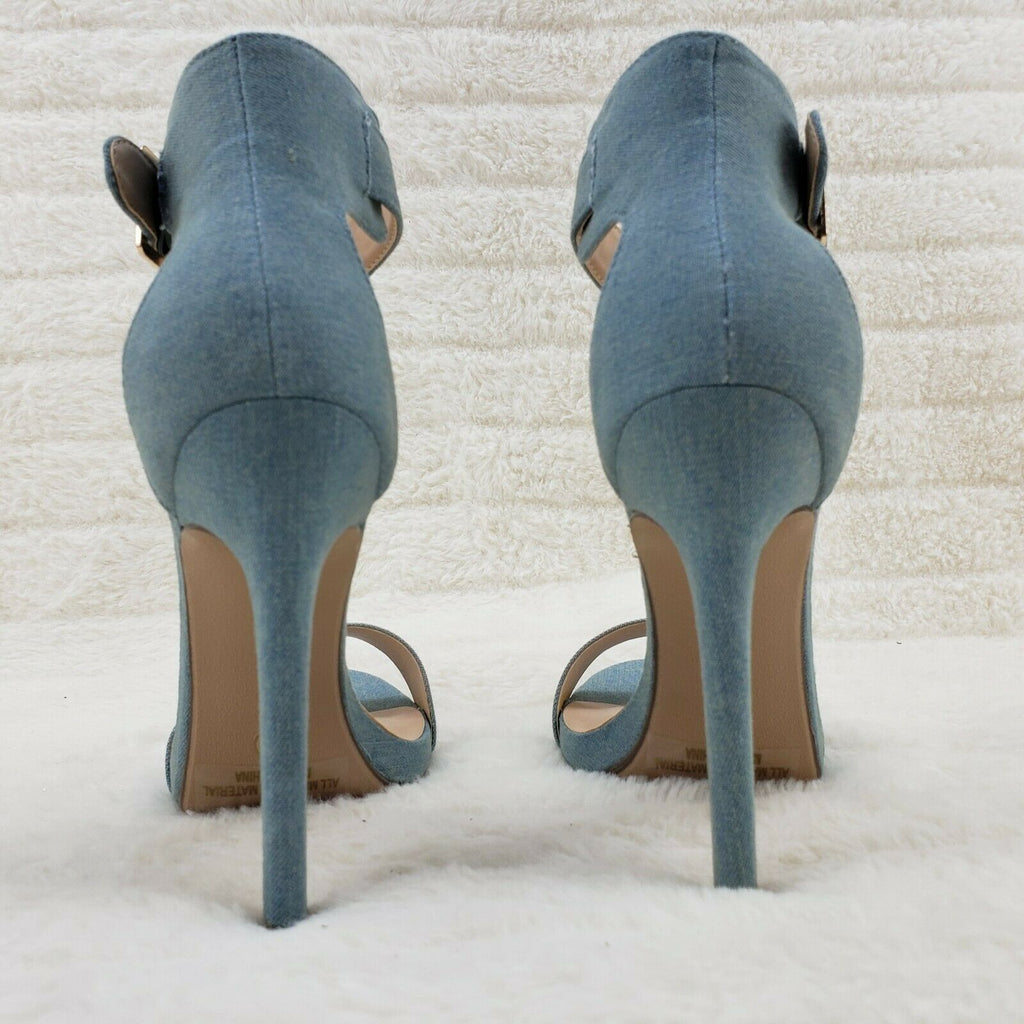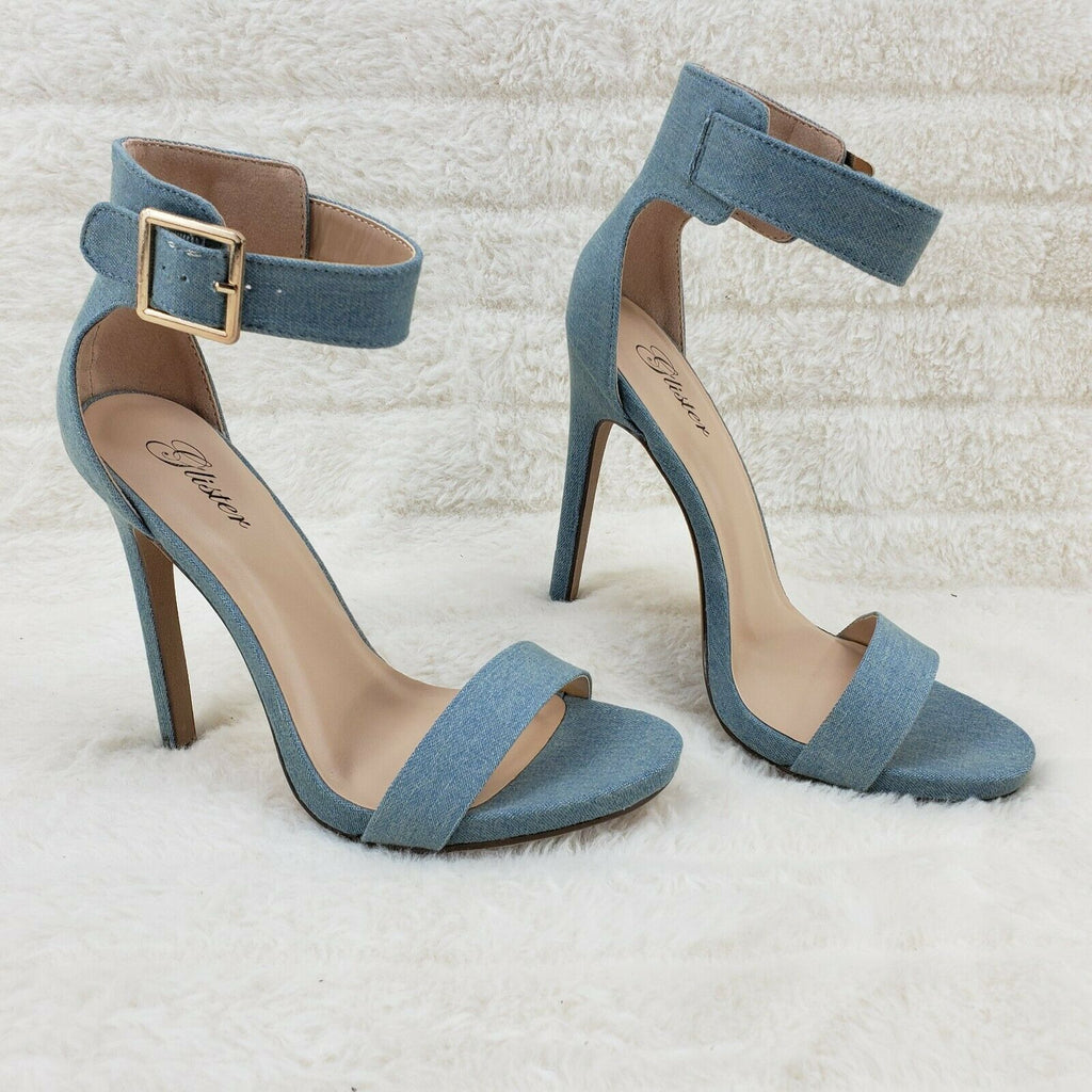Sexy Light Blue Denim Ankle Strap 4.5" High Heel Shoes Heels Glister