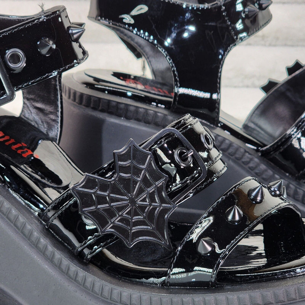 Shaker 13 Black Out Patent 4.5" Wedge Heel Gothic Sandals Studs And Charms NY