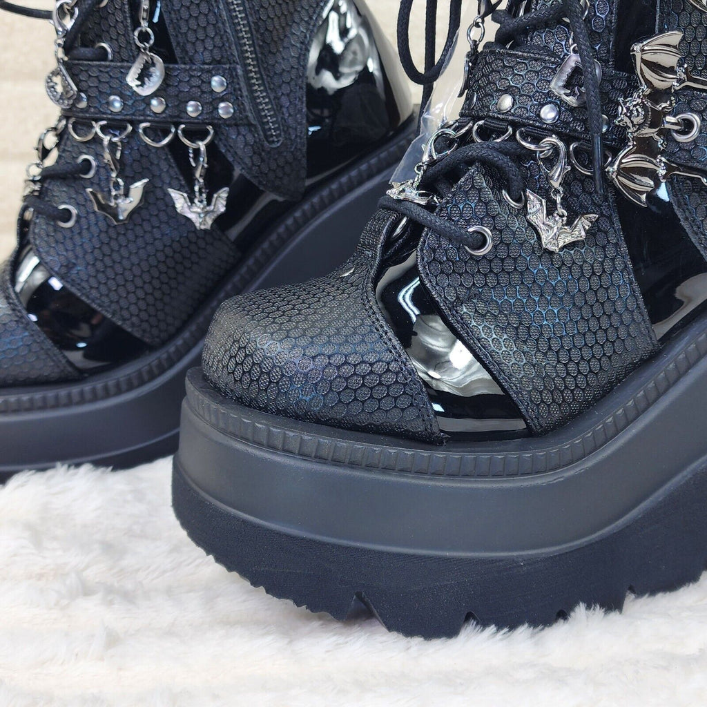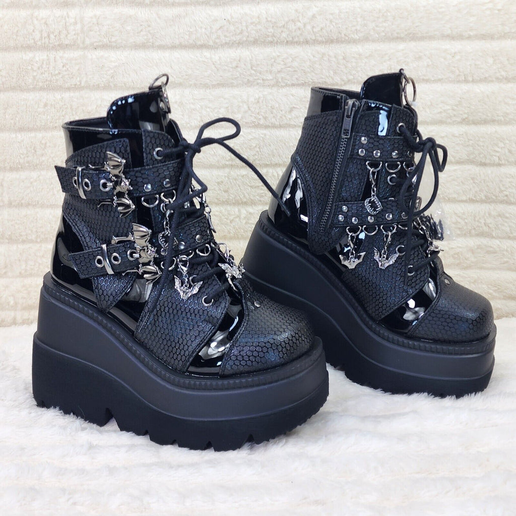 Shaker 66 Black Matte / Patent Platform 4.5" Wedge Heel Charm Ankle Boots NY
