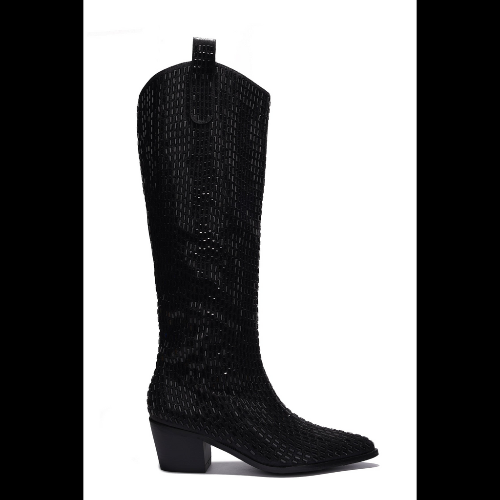 Shattered Black Rhinestone Western Cowgirl Knee Boots NEW