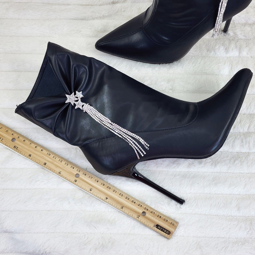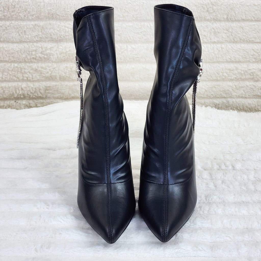 Sherry Black Pull on Drape Rhinestone Pendent High Heel Ankle Boots