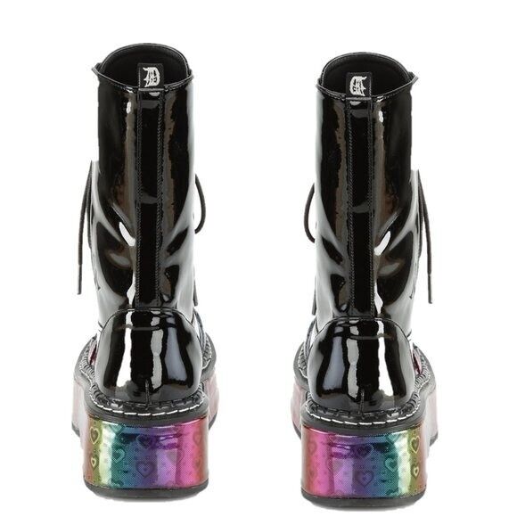 Size 7 New Emily 350 2" Rainbow Platform Mid Calf Black Goth Combat Boots
