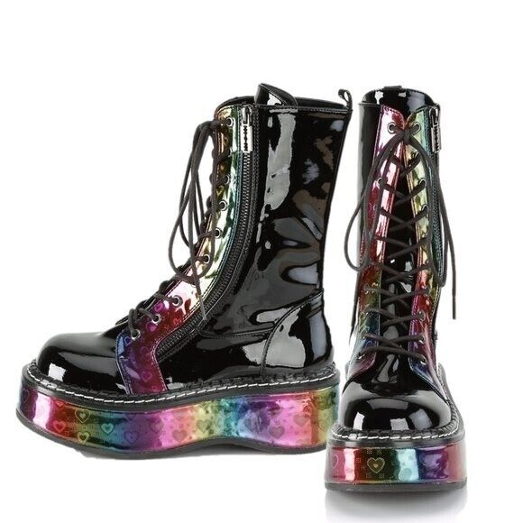 Size 8 New Emily 350 2" Rainbow Platform Mid Calf Black Goth Combat Boots