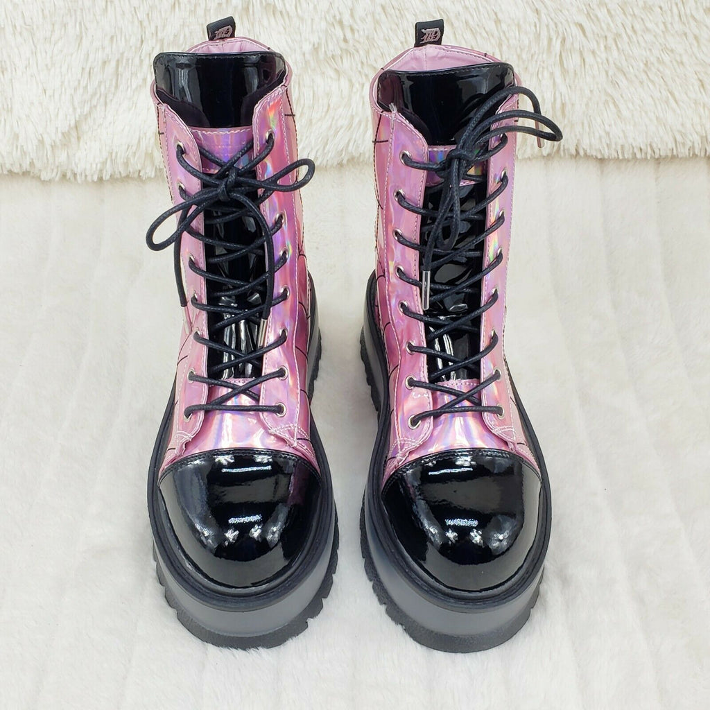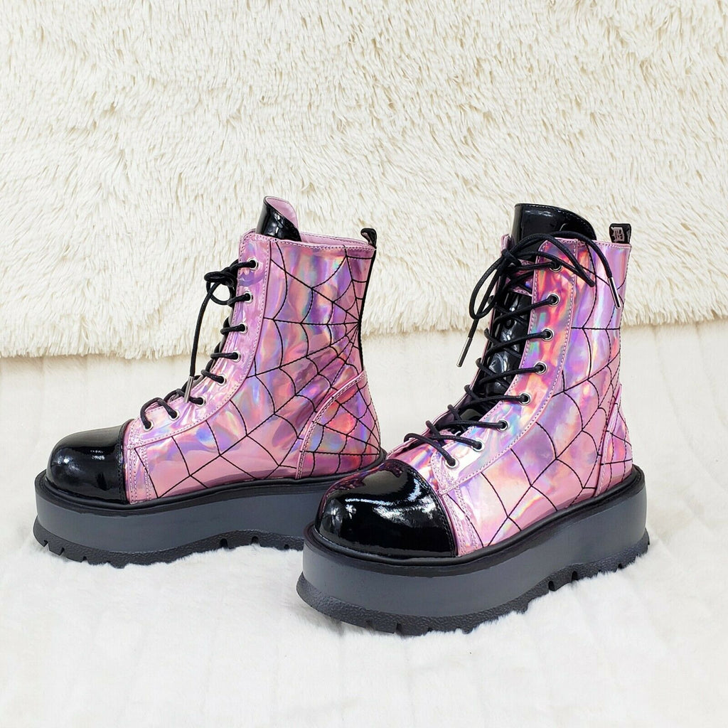 Slacker 88 Pink Hologram Spider Web Design Up Ankle Boots US 6-12 Goth NY