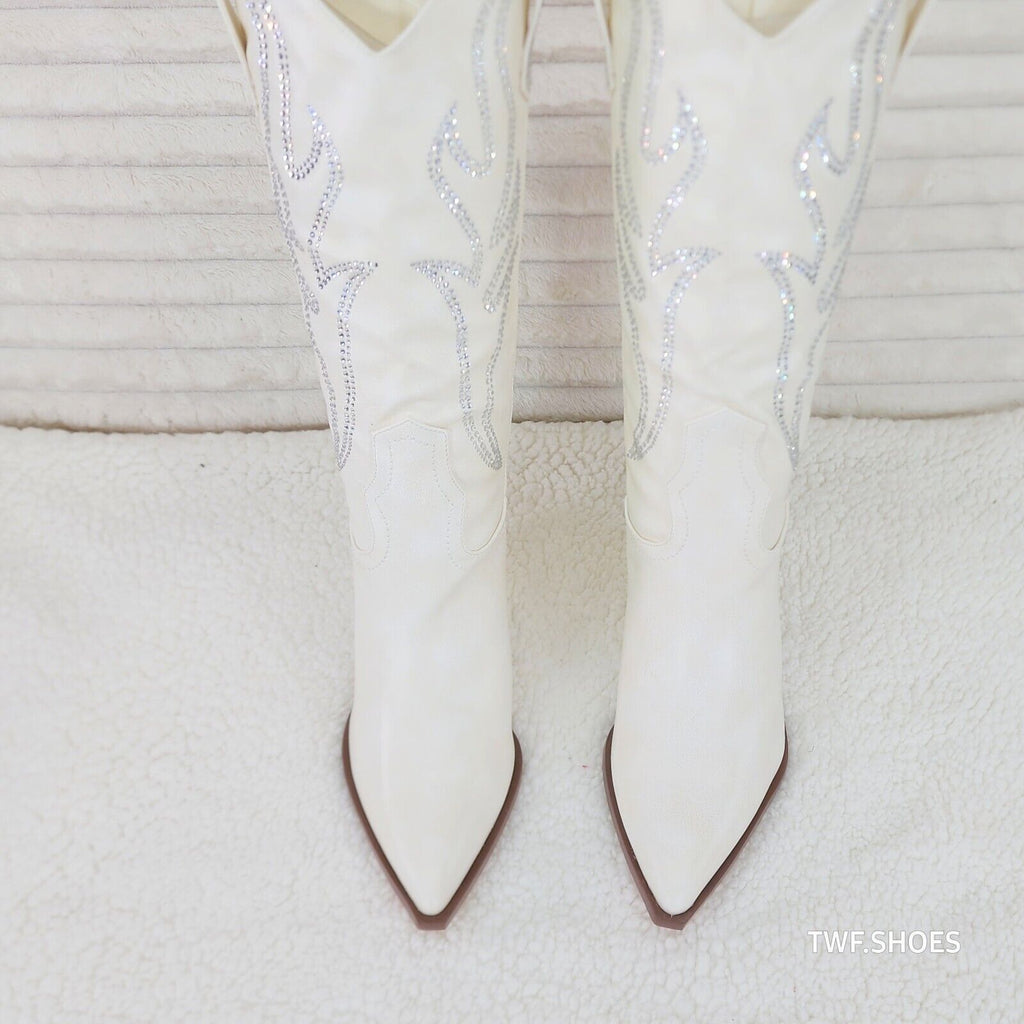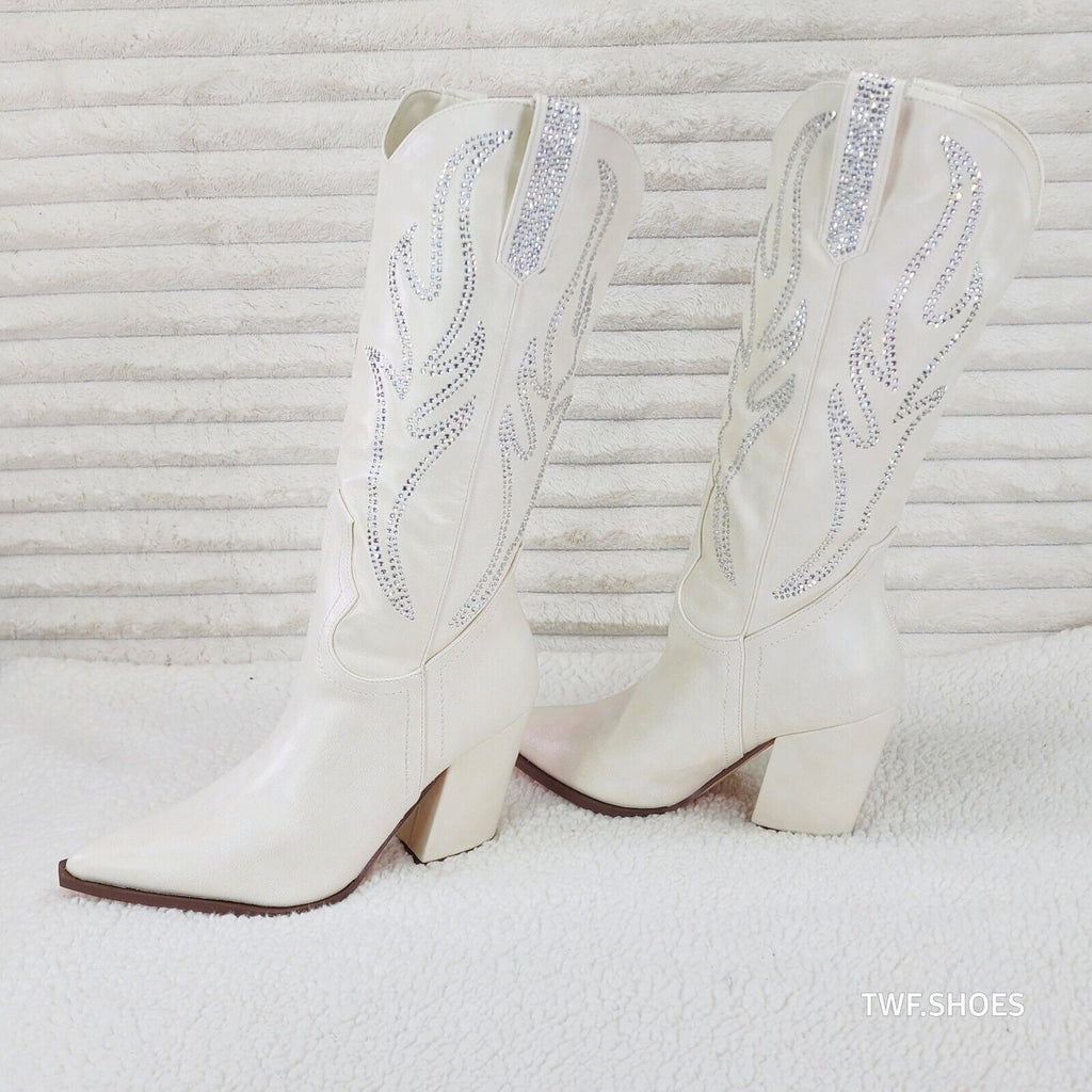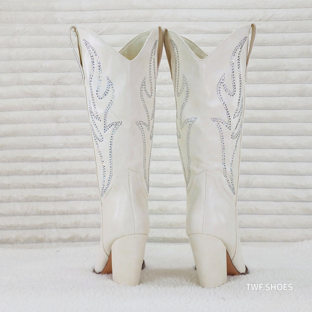So Me Mileage Cream Ivory Rhinestone Design Western Cowgirl Boots
