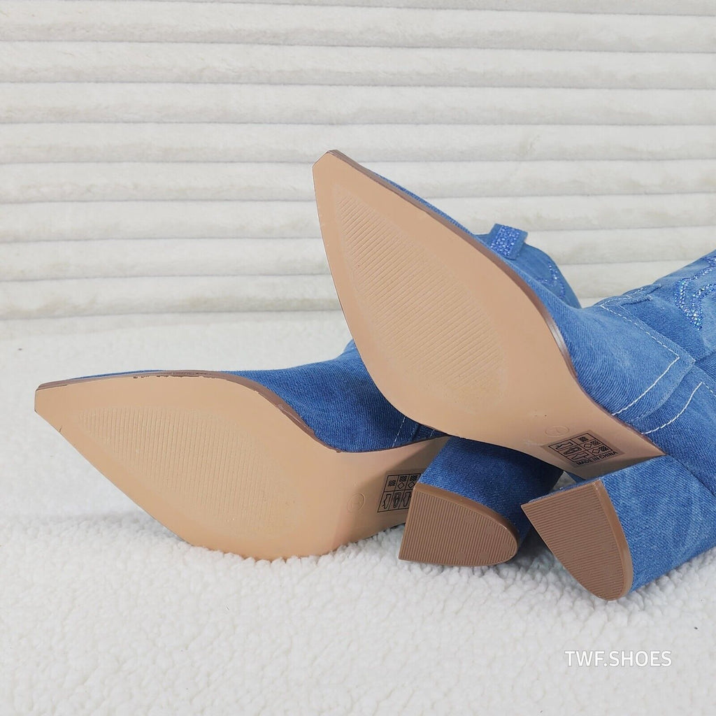 So Me Mileage Denim Rhinestone Design Western Cowgirl Boots