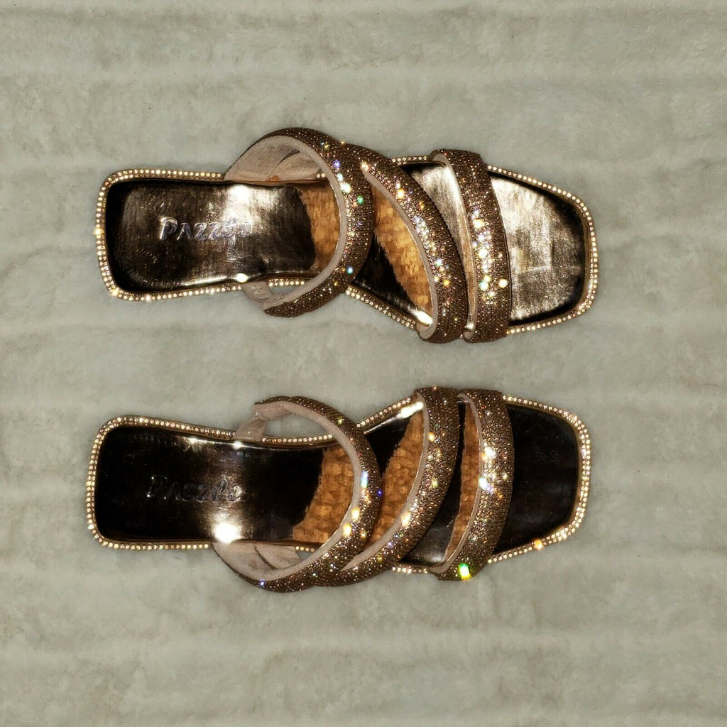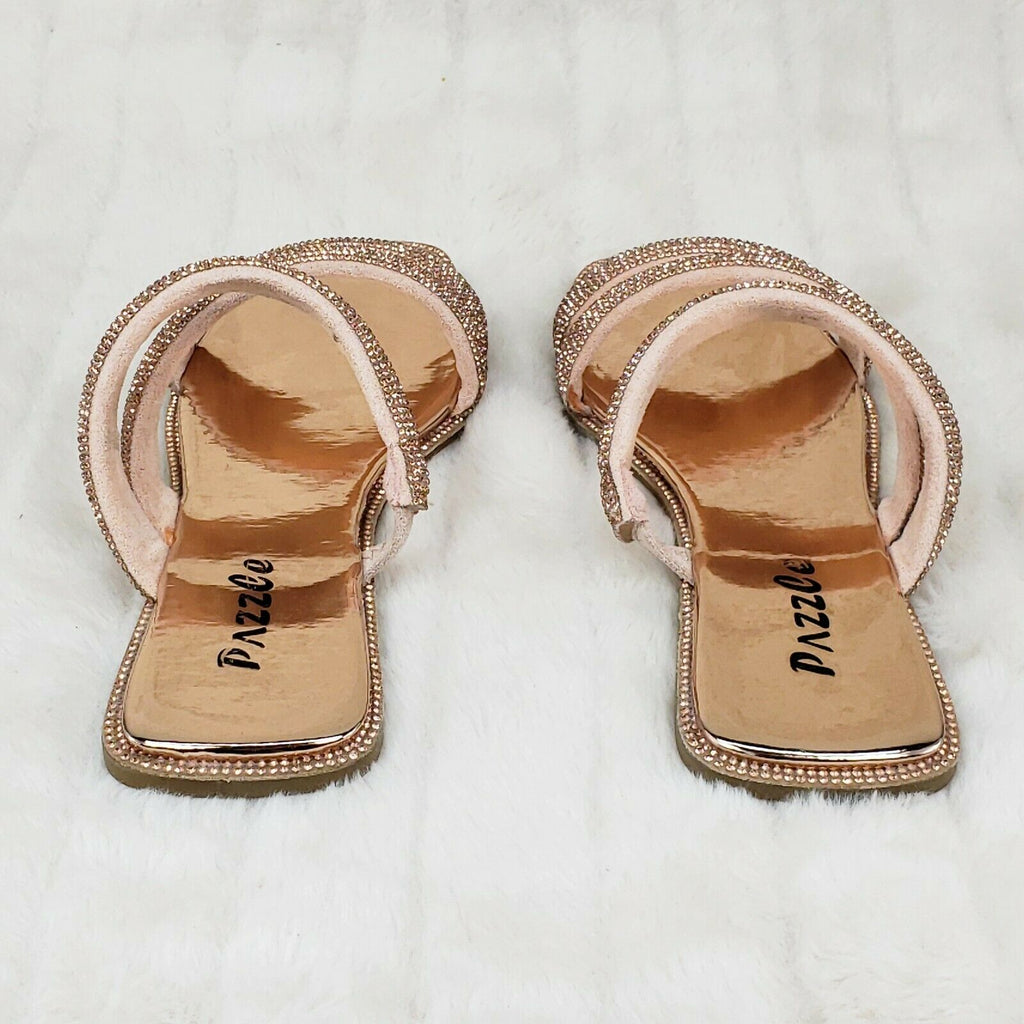 Sparkle Triple Padded Strap Slip On Rose Gold Rhinestone Sandals