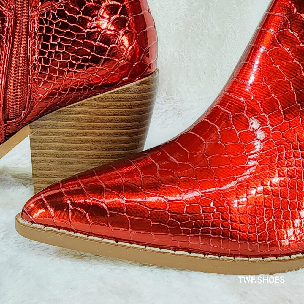 Vibrant Red Gloss Metallic Snake Embossed Upper