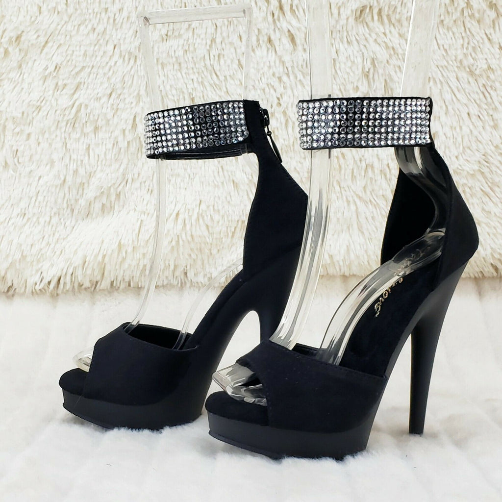 Sultry 625 Black Faux Suede 6" High Heels Platform Sandal Shoes NY