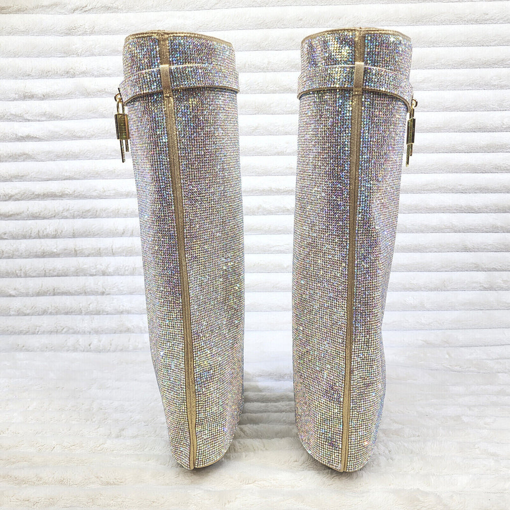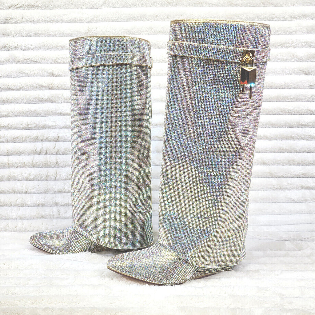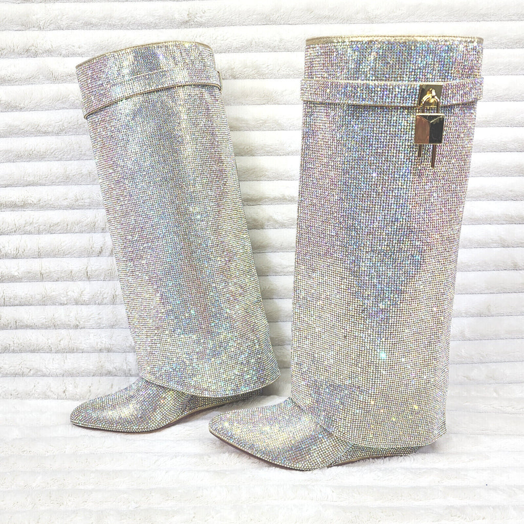 Skirted Wedge Knee Boots Covered in Super Sparkle Rhinestones