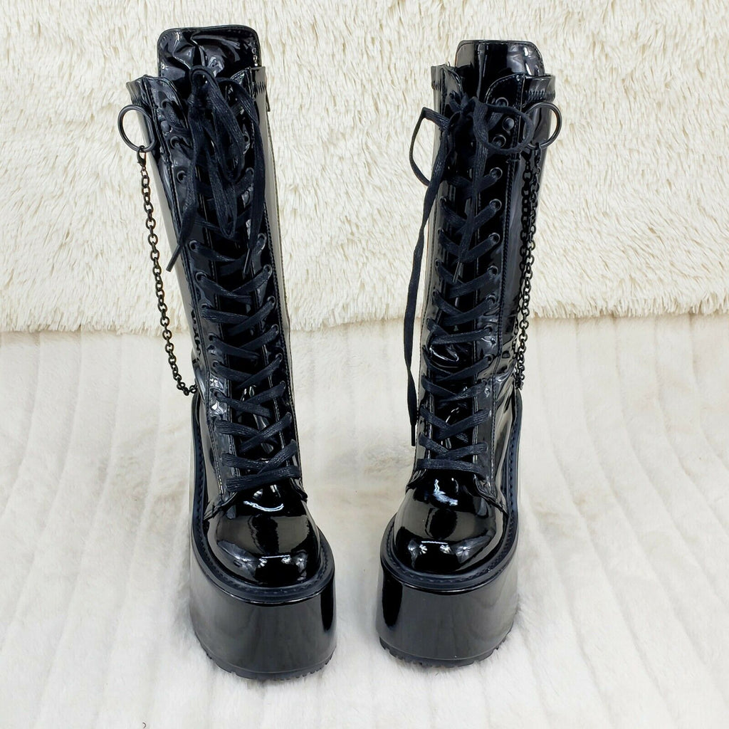 Swing 150 Black Stretch Goth Knee Boot 5.5" Platform With Chains In House NY
