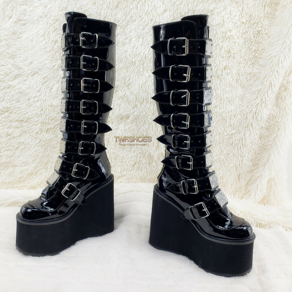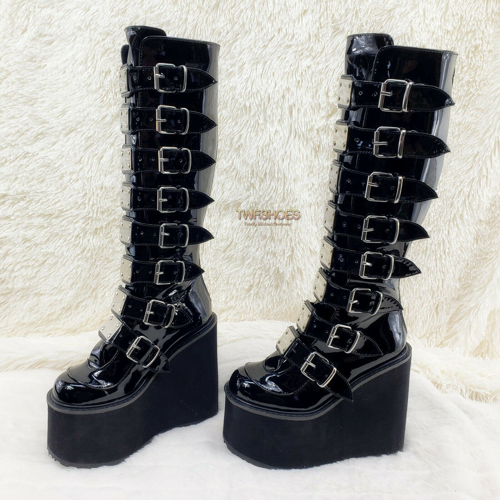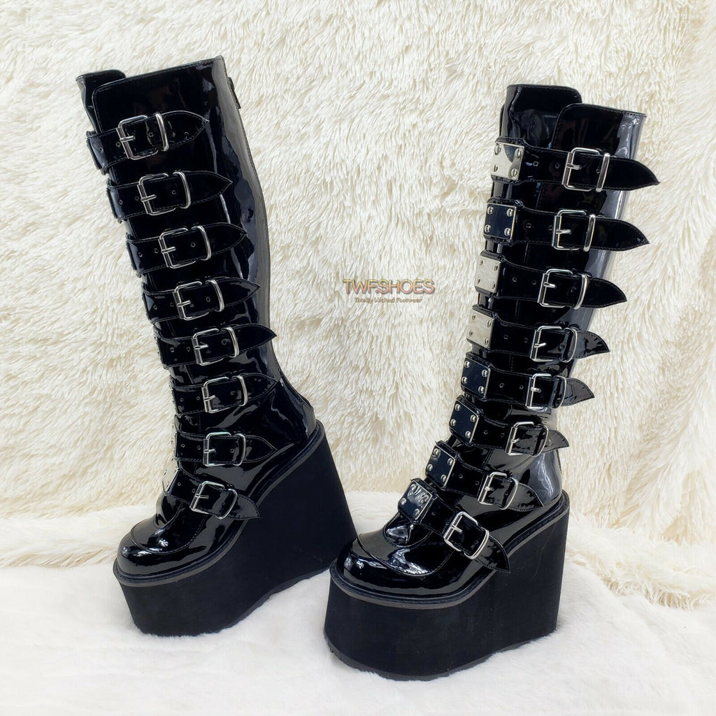 Swing 815WC Black Patent Wide Calf Goth Punk Rave Knee Boot 5.5" Platform NY