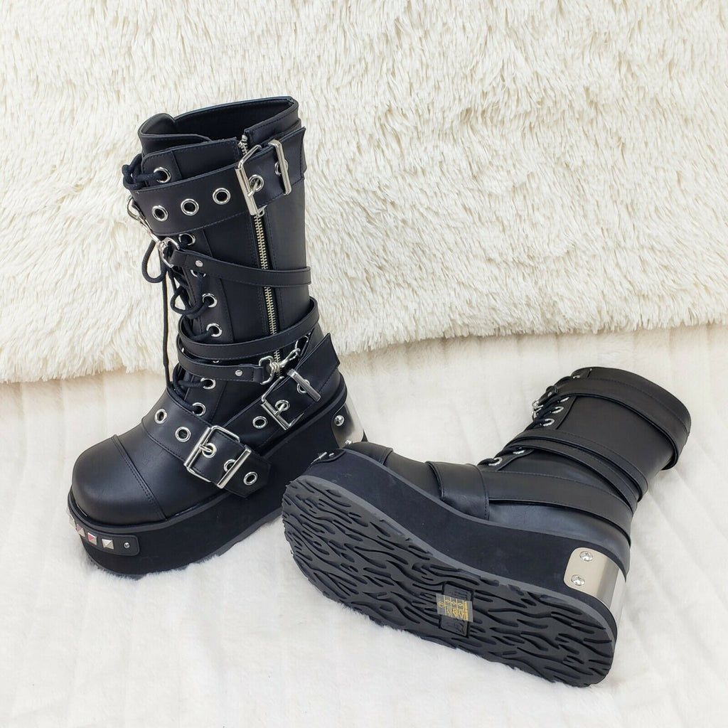 Trashville 250 Multi Strap Goth Punk Rock 3.25" Platform Boot Black Restocked NY
