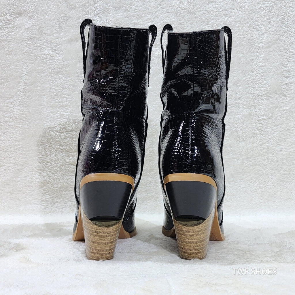 Twisted Black Patent Country Western Cowgirl Ankle Boots 2 Tone Split Cut Heels
