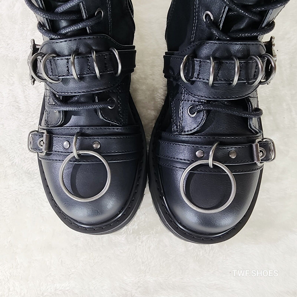 Valor Goth Combat Biker Ankle Boots Black Matte Men US DEMONIA NY