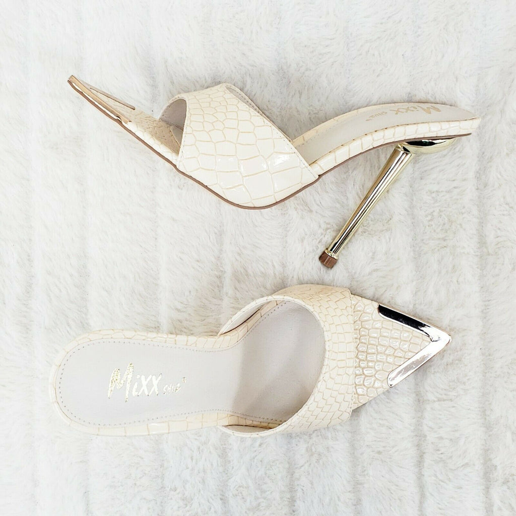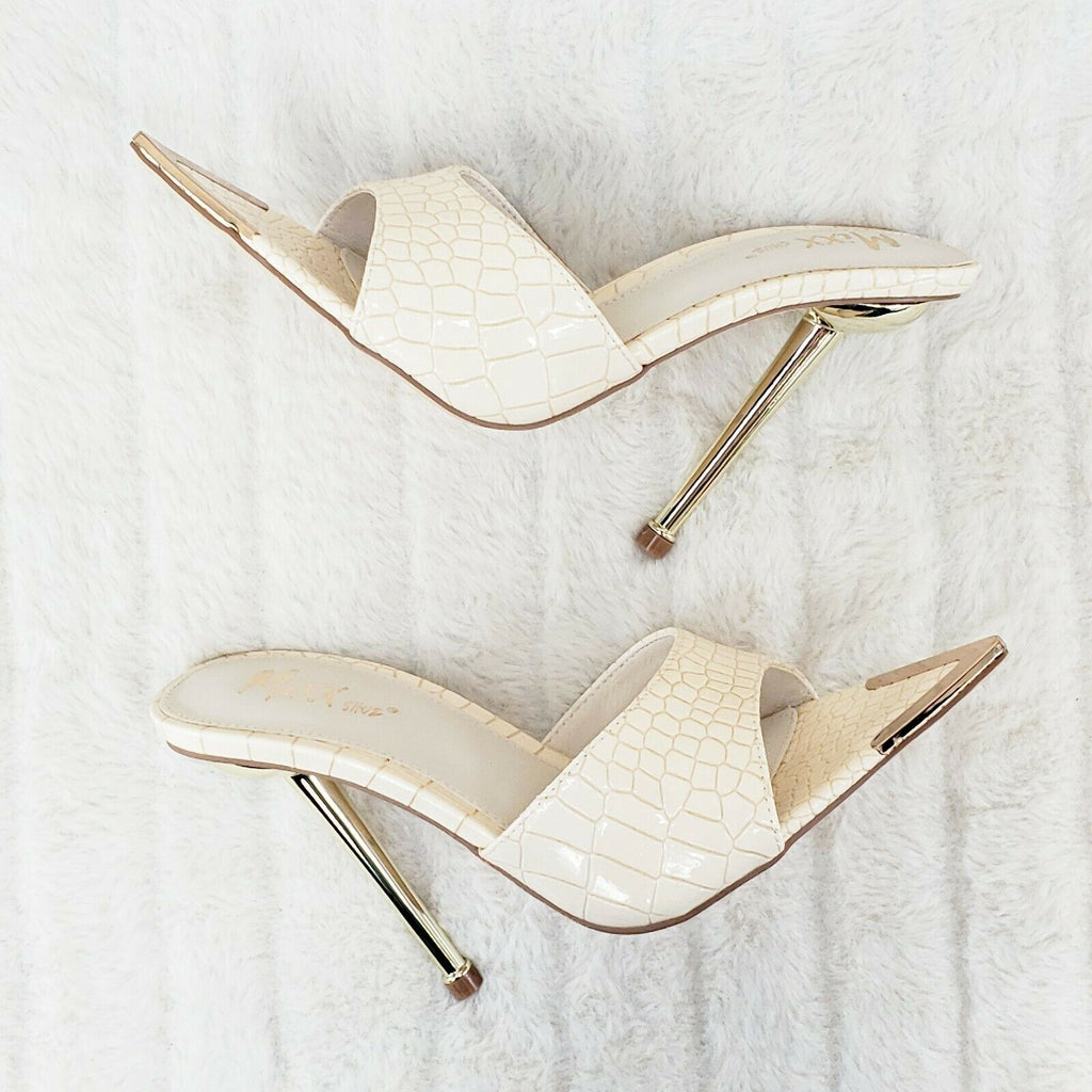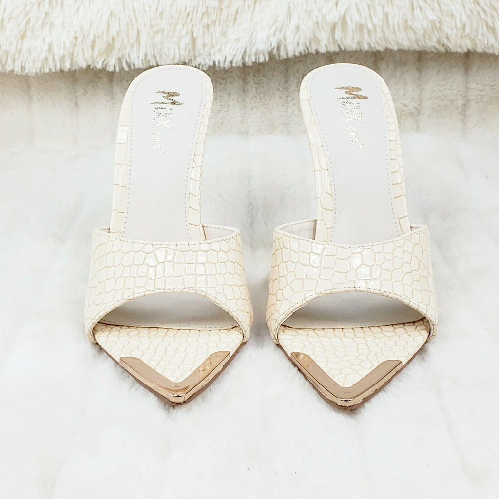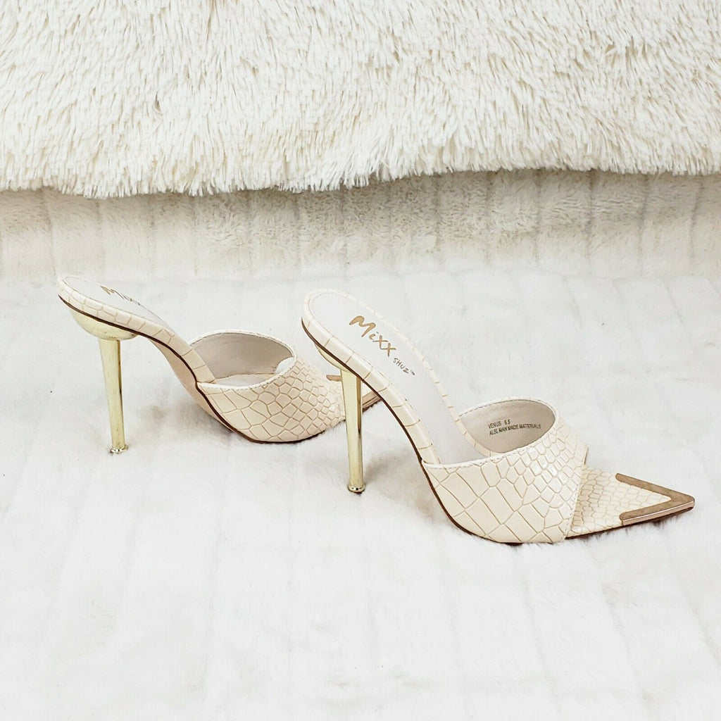 Venus Nude Slim High Heel Pointy Toe Slip On Sandals Slides Clogs