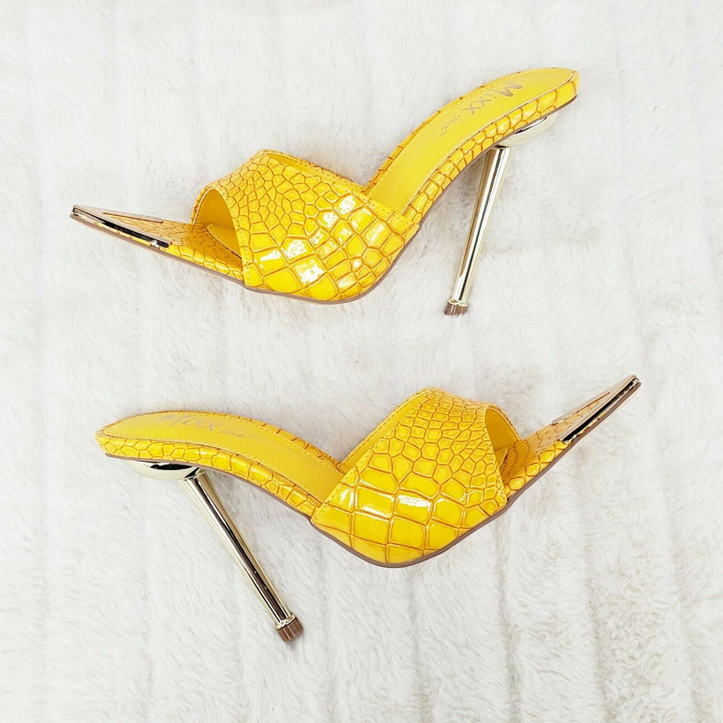 Venus Yellow Slim High Heel Pointy Toe Slip On Sandals Slides Clogs