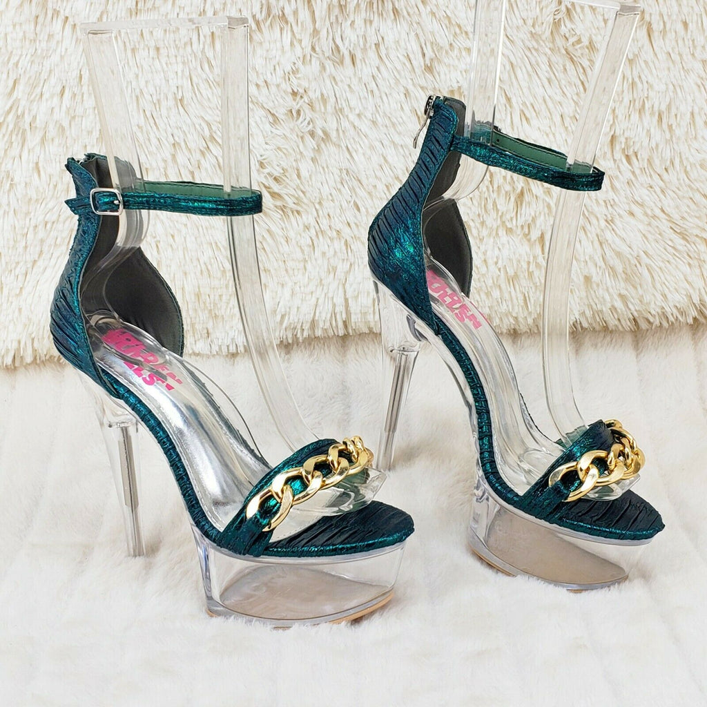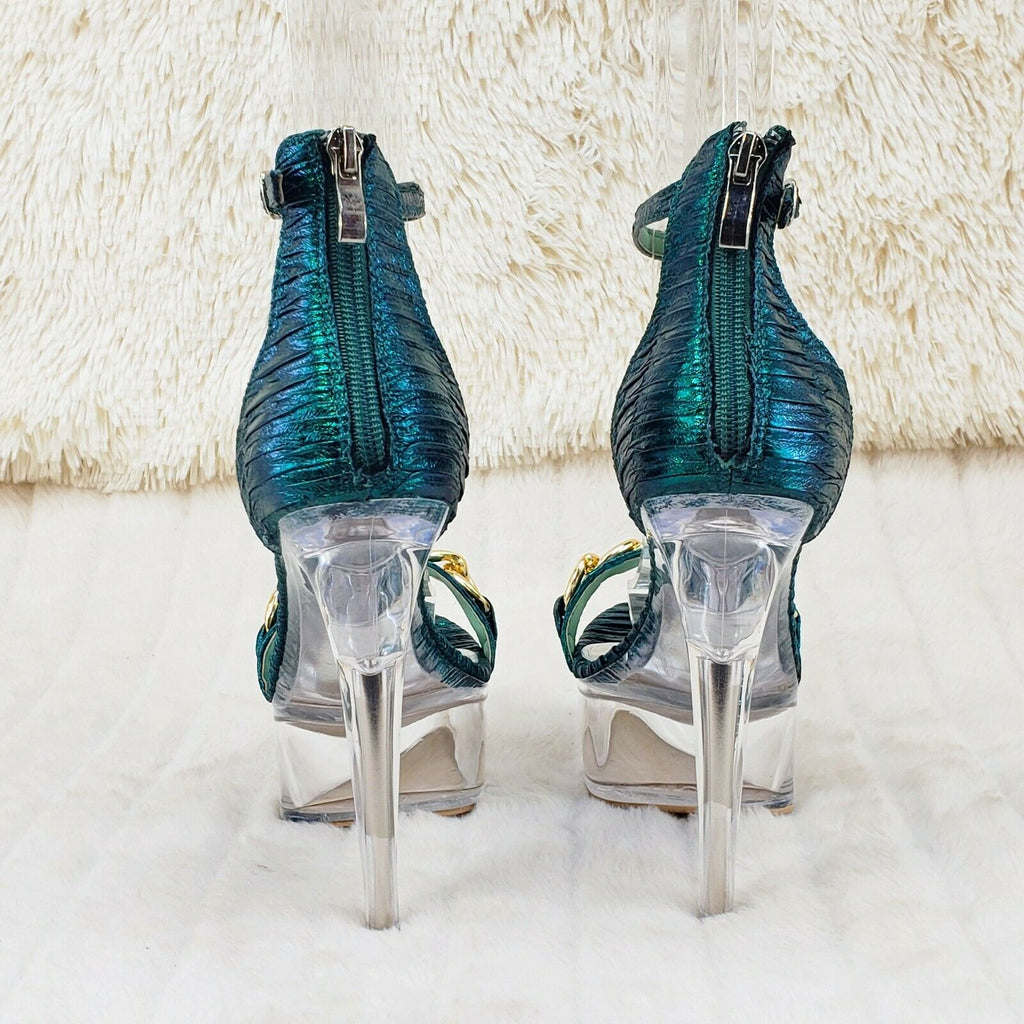 Voltaire Shimmery Green Closed Back Clear Platform High Heels