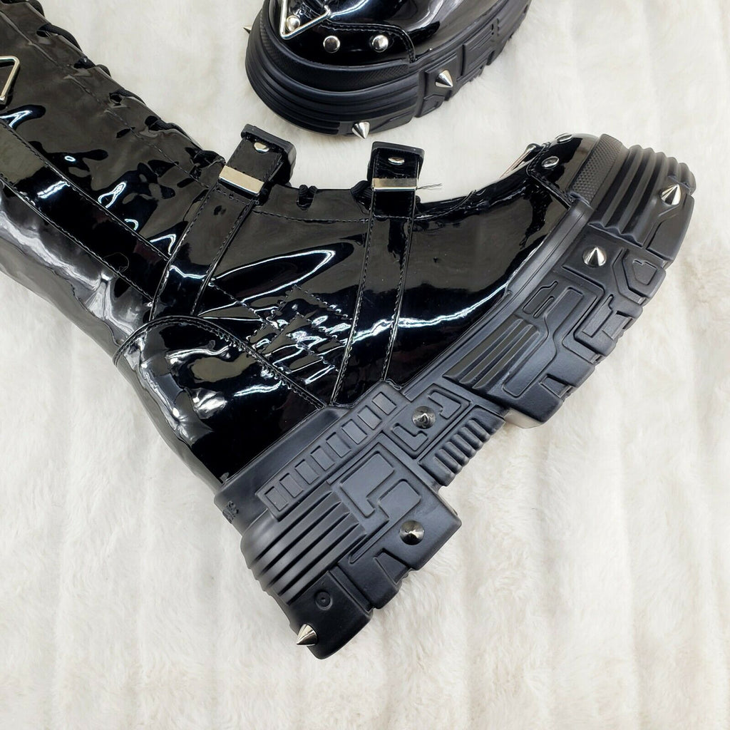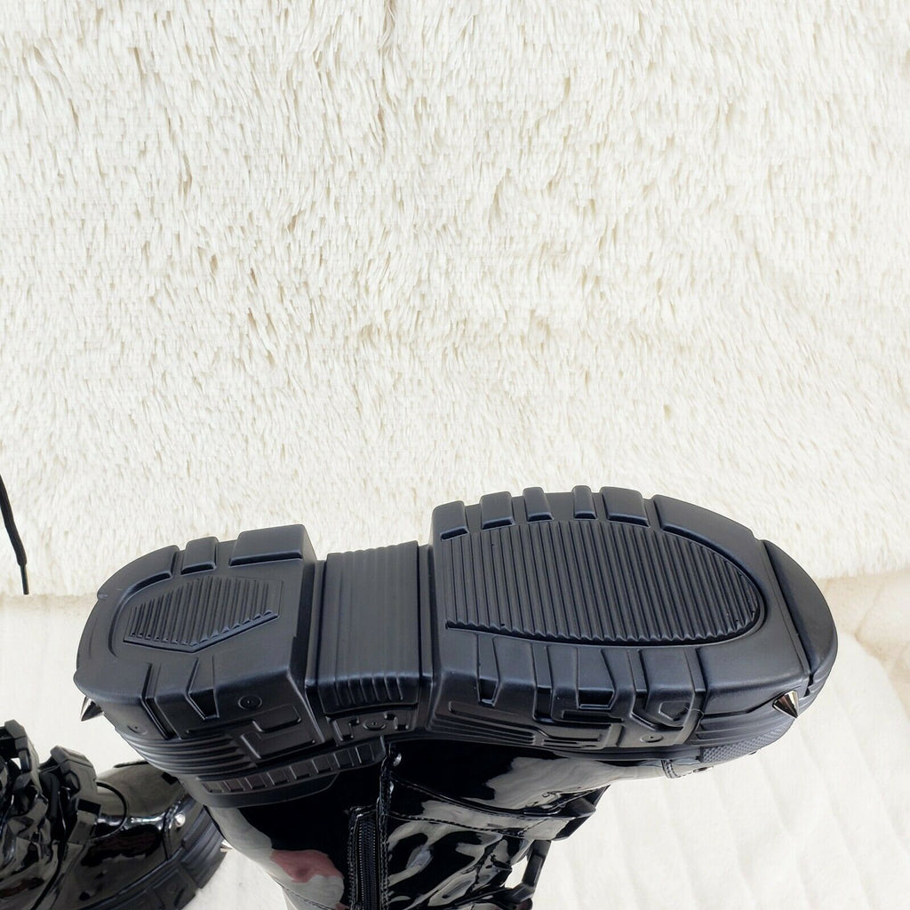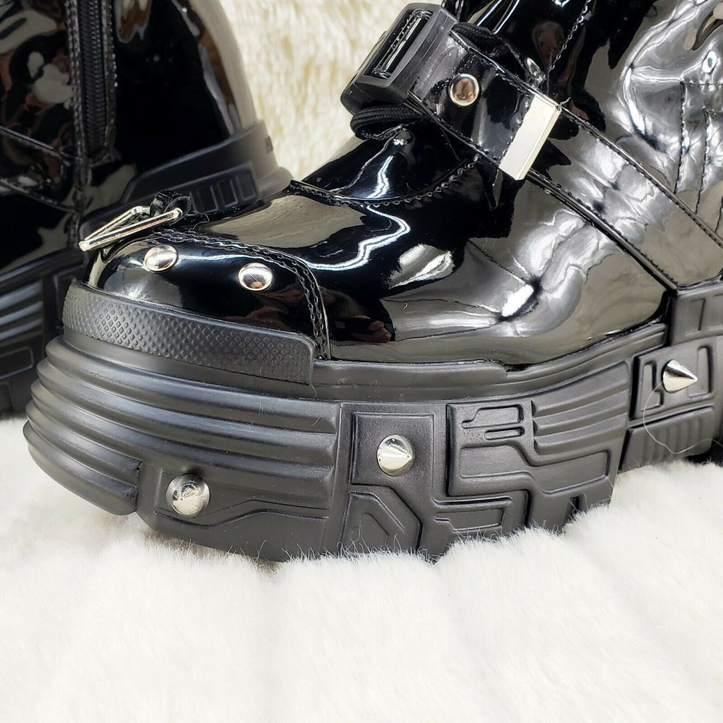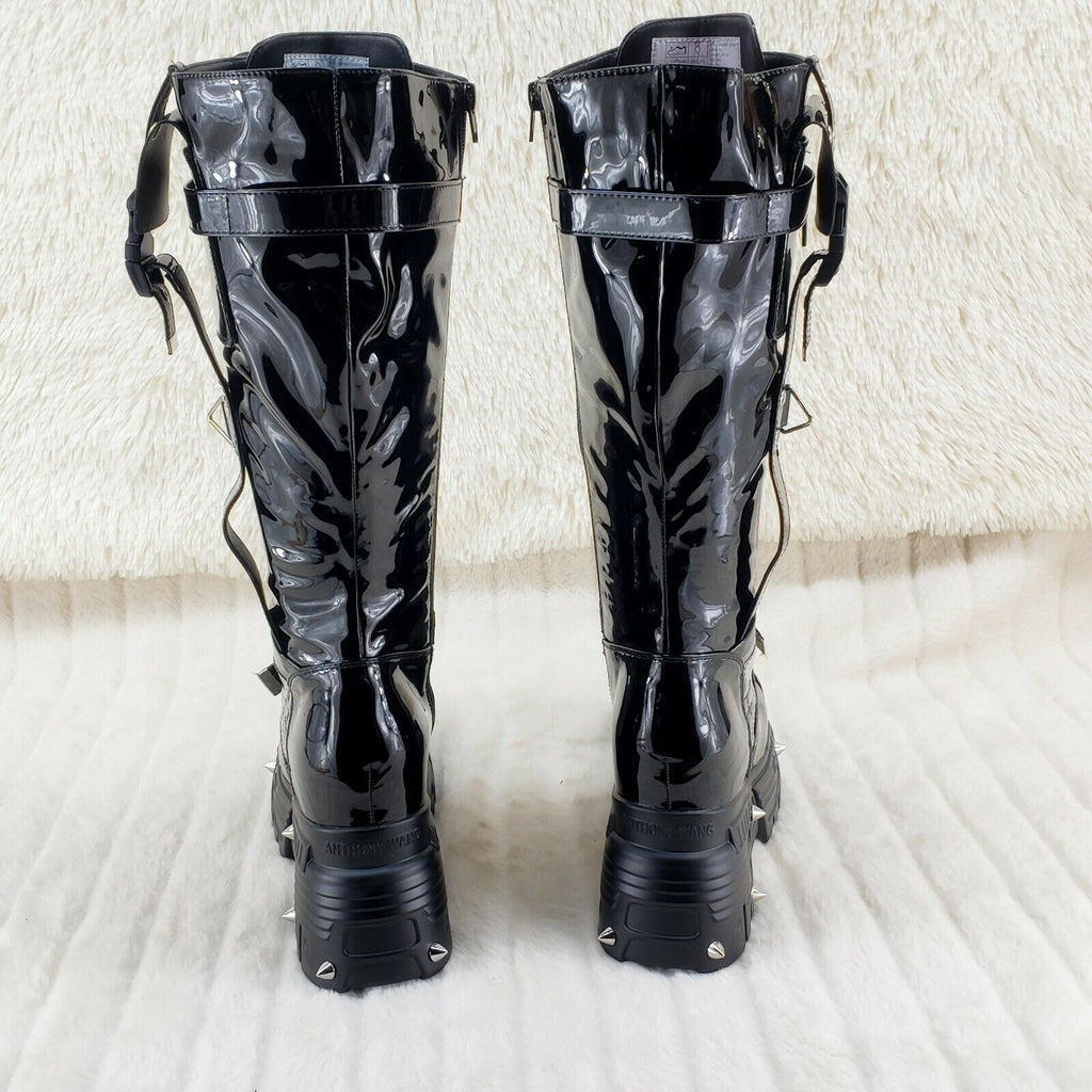 Wang Black Patent Punk Festival 2" Platform 4.5" Wedge Knee Boot Space Cookies