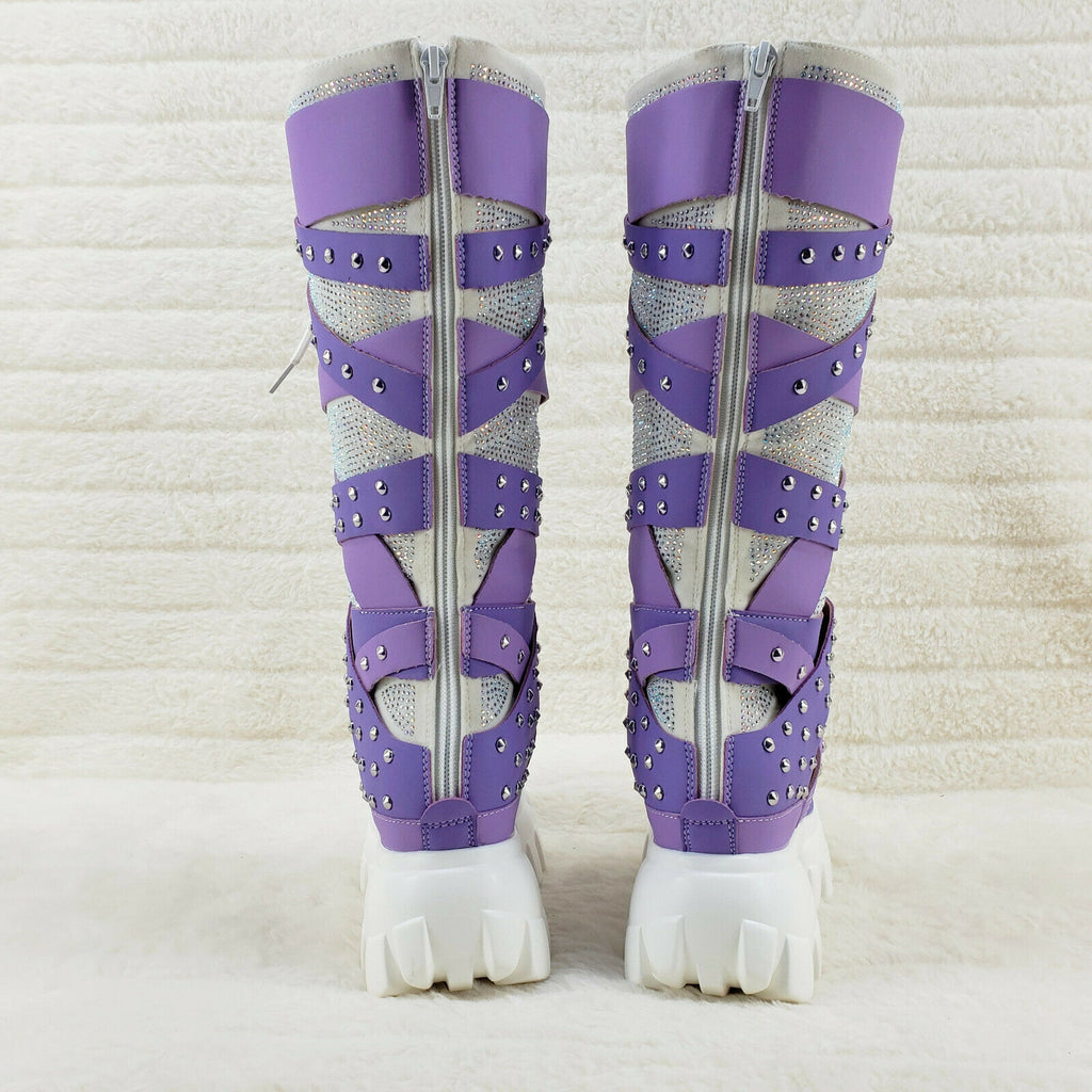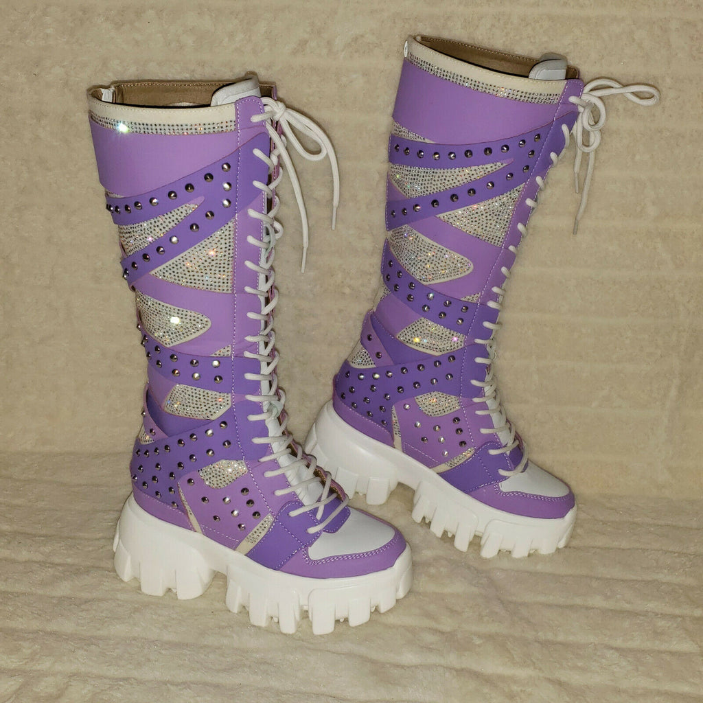 Wang Limited Lilac Purple White Platform Sneaker Knee Boots Hidden Wedge Heels